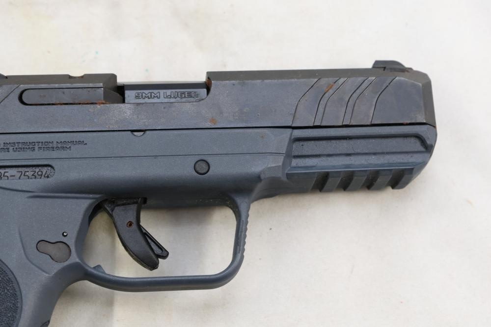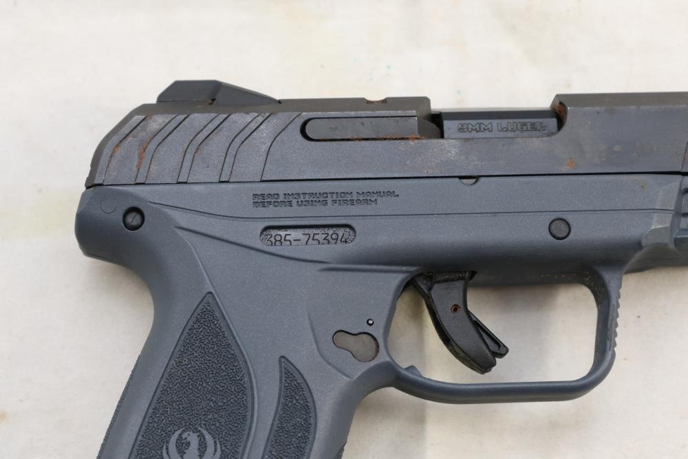 Ruger Security-9 semi-automatic pistol chambered in 9mm Luger, with a textured polymer grip frame and standard sights; Serial Number 385-75394. All lots are subject to all applicable laws at the time of transfer. NOTE: Semi automatic rifles and all handguns require a license in NYS. There is a $35 transfer fee per long gun. There is a $40 transfer fee per hand gun. There is a $20 transfer fee per ammunition lot. If you fail the background check, the transfer fee still applies, and you are still required to make payment and then reconsign the lot to auction. FFL dealers are not exempt from these fees. A background check will be required for all buyers purchasing a firearm and/or ammunition. NYS charges a background check fee for all firearms and ammunition. The fee is $9 for firearms and $2.50 for ammunition. The NYS fee is per background check NOT per lot, will be collected directly by Civil Armory, and is in addition to any transfer All lots are subject to all applicable laws at the time of transfer. NOTE: Semi automatic rifles and all handguns require a license in NYS. There is a $35 transfer fee per long gun. There is a $40 transfer fee per hand gun. There is a $20 transfer fee per ammunition lot. If you fail the background check, the transfer fee still applies, and you are still required to make payment and then reconsign the lot to auction. FFL dealers are not exempt from these fees. A background check will be required for all buyers purchasing a firearm and/or ammunition. NYS charges a background check fee for all firearms and ammunition. The fee is $9 for firearms and $2.50 for ammunition. The NYS fee is per background check NOT per lot, will be collected directly by Civil Armory, and is in addition to any transfer