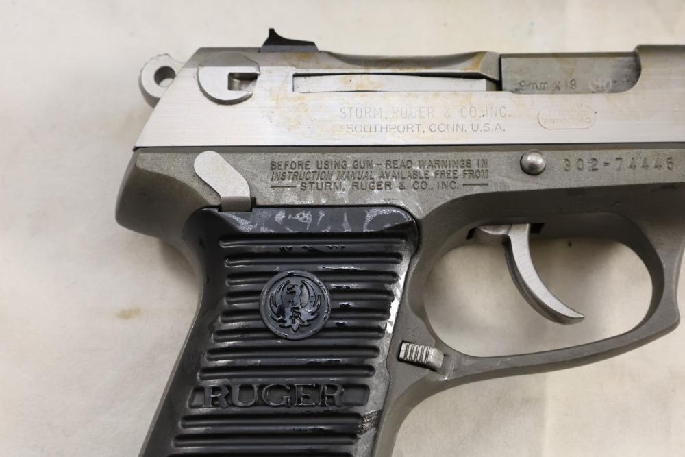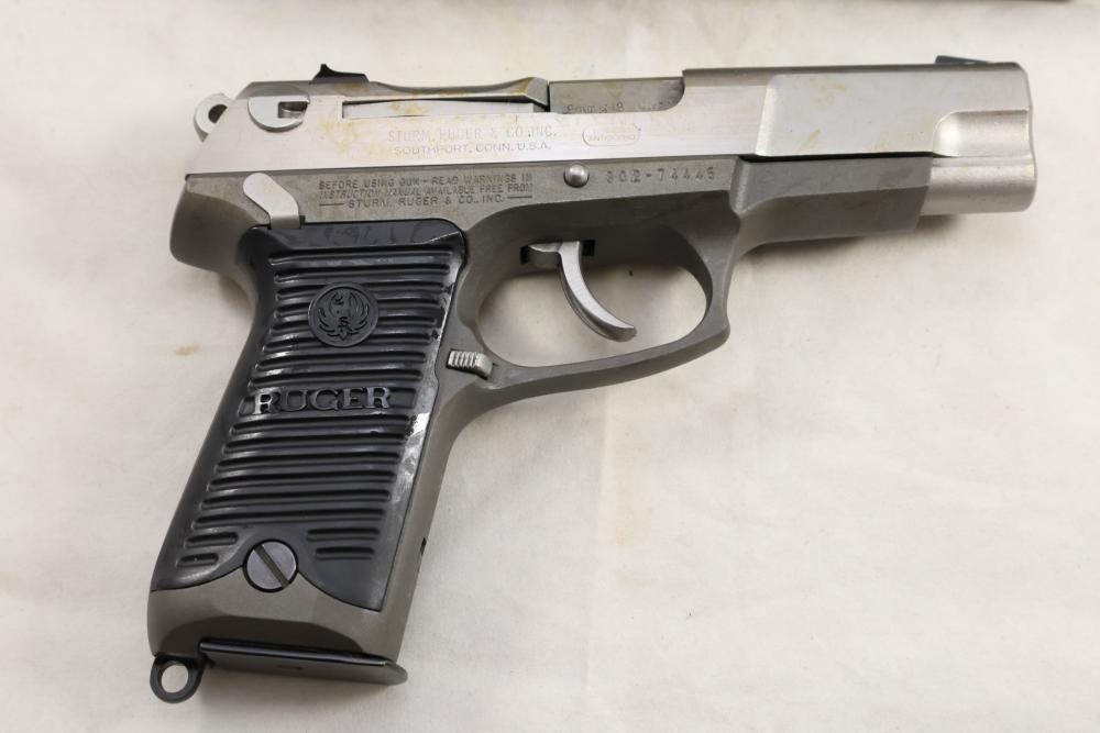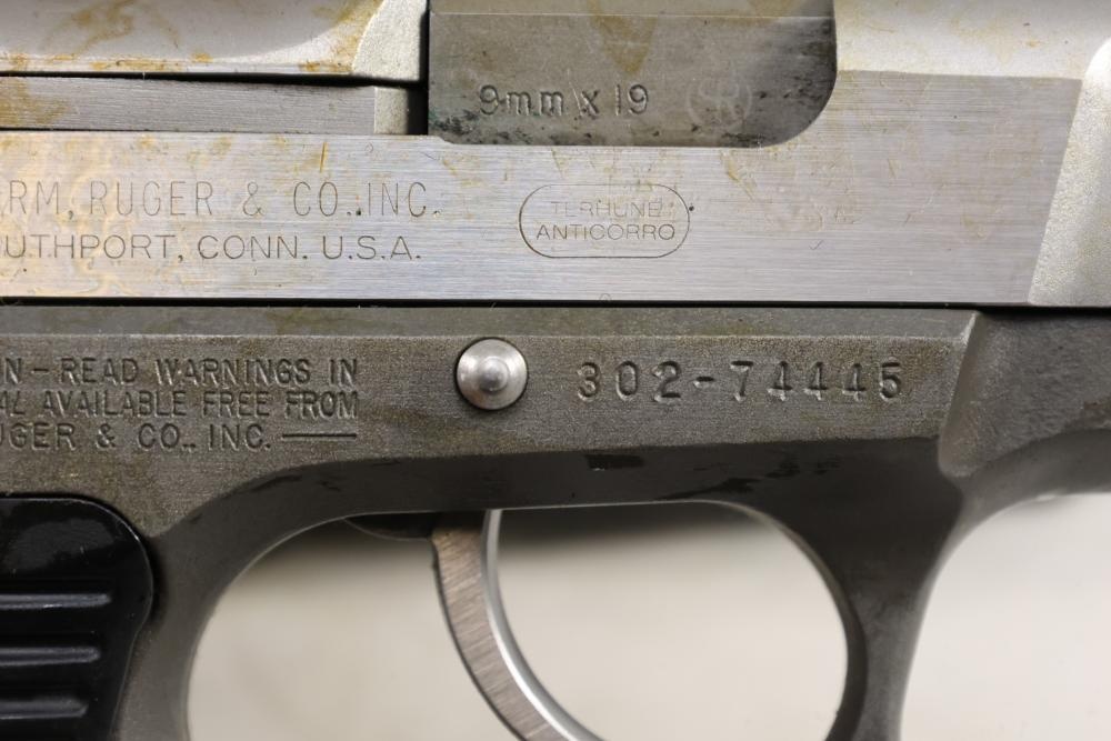 Ruger P89DC semi-automatic pistol chambered in 9mm x 19, with black checkered synthetic grips. Serial Number 302-74445. Accessories include a hard plastic case, paperwork, and one additional magazine. All lots are subject to all applicable laws at the time of transfer. NOTE: Semi automatic rifles and all handguns require a license in NYS. There is a $35 transfer fee per long gun. There is a $40 transfer fee per hand gun. There is a $20 transfer fee per ammunition lot. If you fail the background check, the transfer fee still applies, and you are still required to make payment and then reconsign the lot to auction. FFL dealers are not exempt from these fees. A background check will be required for all buyers purchasing a firearm and/or ammunition. NYS charges a background check fee for all firearms and ammunition. The fee is $9 for firearms and $2.50 for ammunition. The NYS fee is per background check NOT per lot, will be collected directly by Civil Armory, and is in addition to transfer fees. All lots are subject to all applicable laws at the time of transfer. NOTE: Semi automatic rifles and all handguns require a license in NYS. There is a $35 transfer fee per long gun. There is a $40 transfer fee per hand gun. There is a $20 transfer fee per ammunition lot. If you fail the background check, the transfer fee still applies, and you are still required to make payment and then reconsign the lot to auction. FFL dealers are not exempt from these fees. A background check will be required for all buyers purchasing a firearm and/or ammunition. NYS charges a background check fee for all firearms and ammunition. The fee is $9 for firearms and $2.50 for ammunition. The NYS fee is per background check NOT per lot, will be collected directly by Civil Armory, and is in addition to transfer fees.