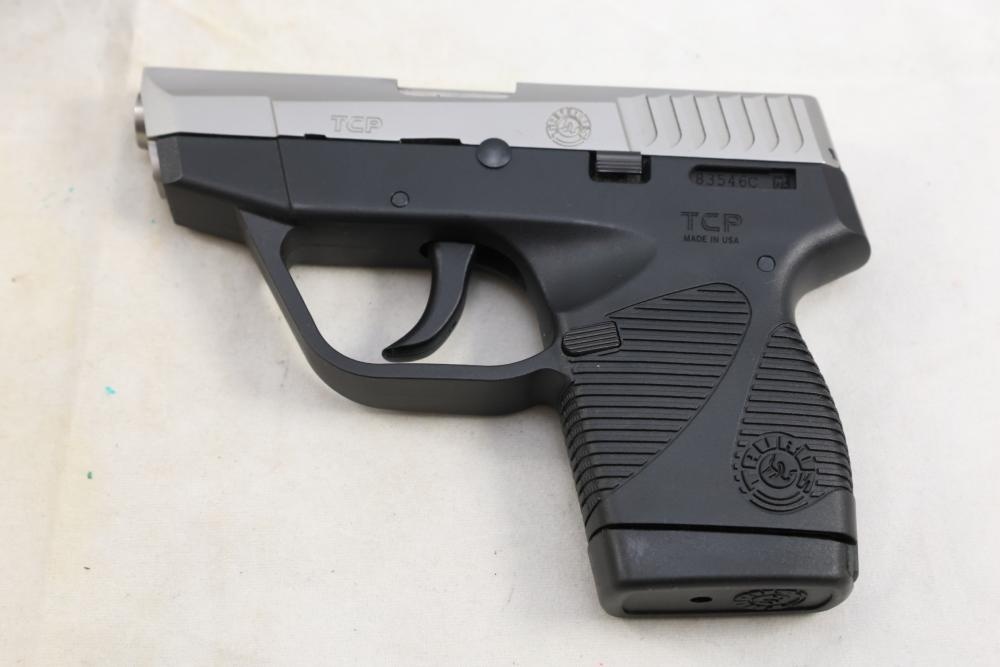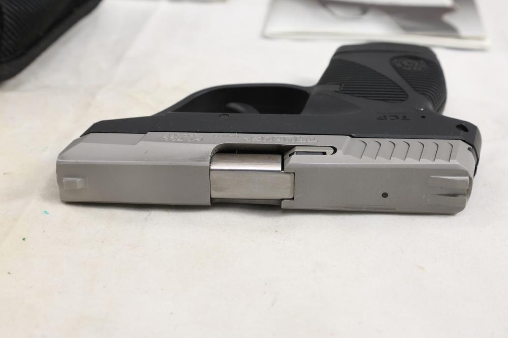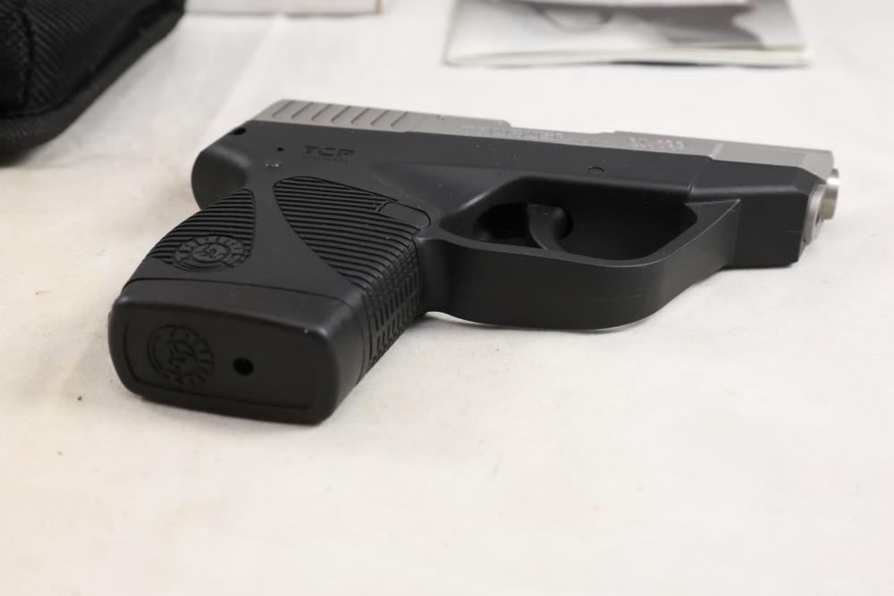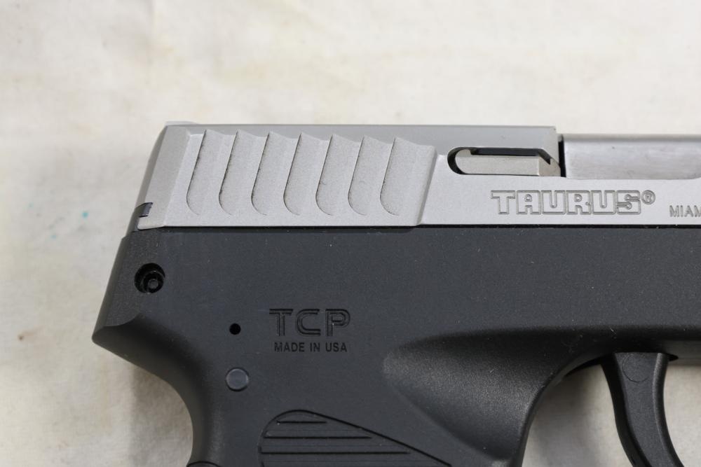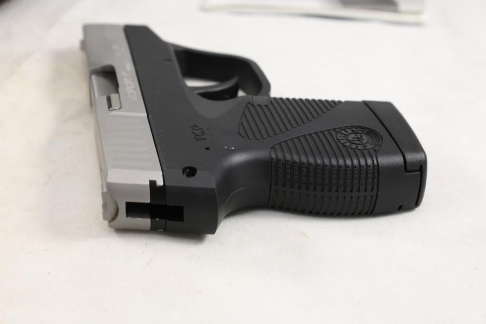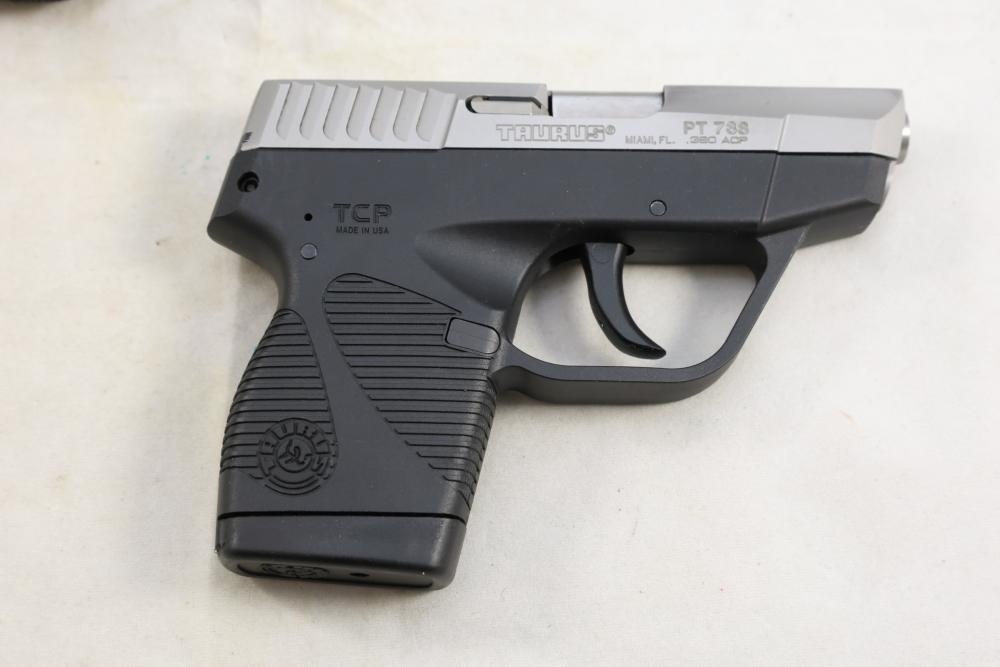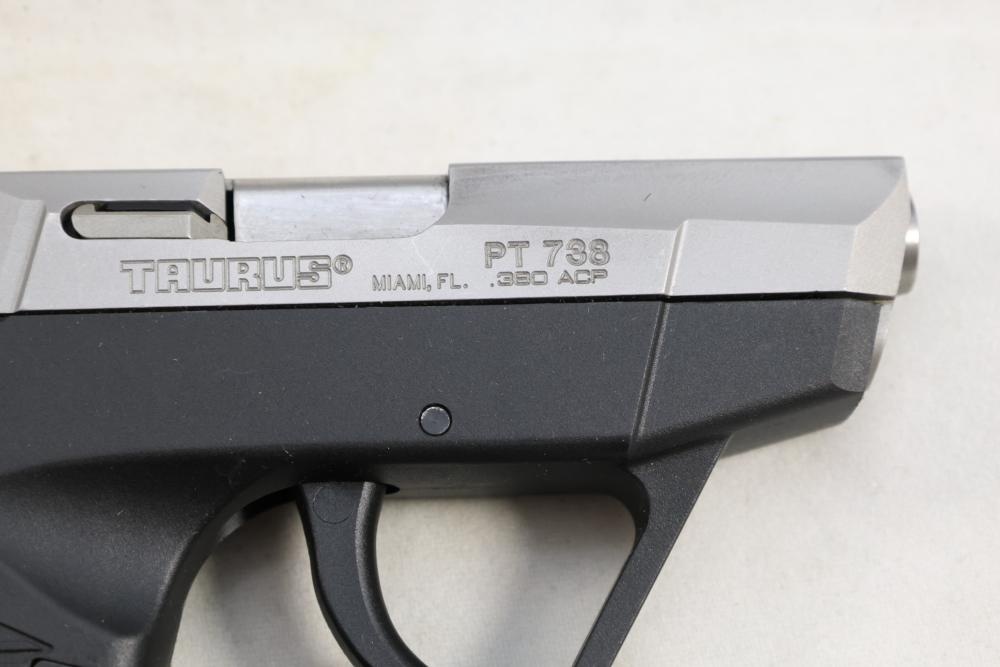 Taurus PT 738 TCP semi-automatic pistol chambered in .380 ACP, with black synthetic grips. Serial Number 83546C. All lots are subject to all applicable laws at the time of transfer. NOTE: Semi automatic rifles and all handguns require a license in NYS. There is a $35 transfer fee per long gun. There is a $40 transfer fee per hand gun. There is a $20 transfer fee per ammunition lot. If you fail the background check, the transfer fee still applies, and you are still required to make payment and then reconsign the lot to auction. FFL dealers are not exempt from these fees. A background check will be required for all buyers purchasing a firearm and/or ammunition. NYS charges a background check fee for all firearms and ammunition. The fee is $9 for firearms and $2.50 for ammunition. The NYS fee is per background check NOT per lot, will be collected directly by Civil Armory, and is in addition to any transfer All lots are subject to all applicable laws at the time of transfer. NOTE: Semi automatic rifles and all handguns require a license in NYS. There is a $35 transfer fee per long gun. There is a $40 transfer fee per hand gun. There is a $20 transfer fee per ammunition lot. If you fail the background check, the transfer fee still applies, and you are still required to make payment and then reconsign the lot to auction. FFL dealers are not exempt from these fees. A background check will be required for all buyers purchasing a firearm and/or ammunition. NYS charges a background check fee for all firearms and ammunition. The fee is $9 for firearms and $2.50 for ammunition. The NYS fee is per background check NOT per lot, will be collected directly by Civil Armory, and is in addition to any transfer