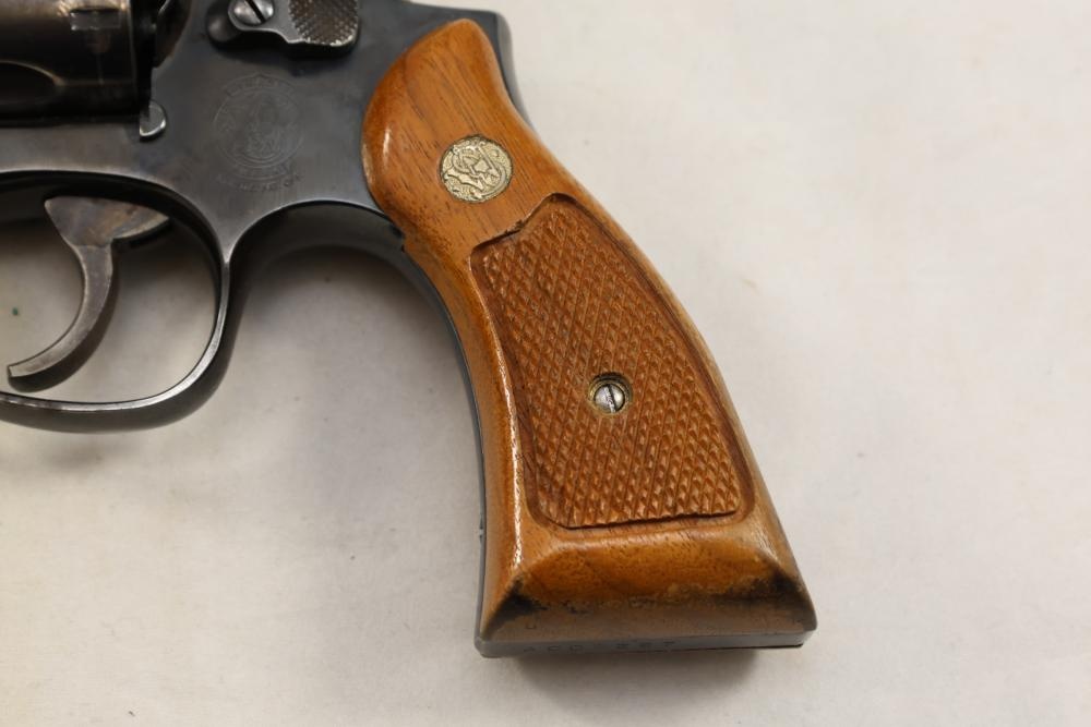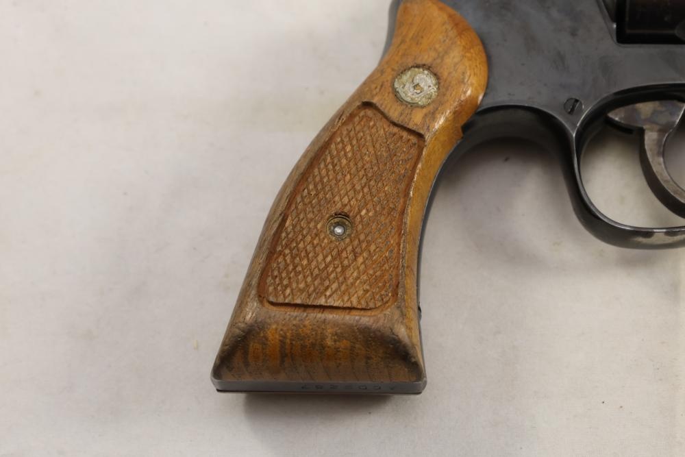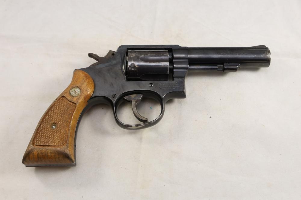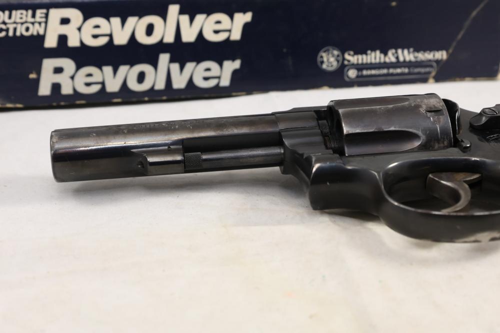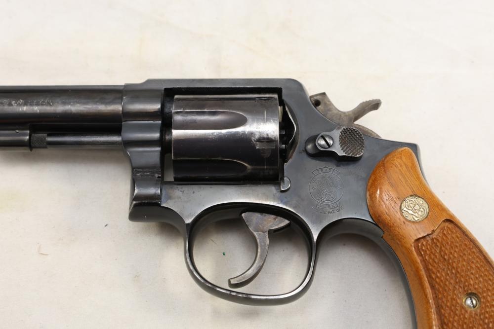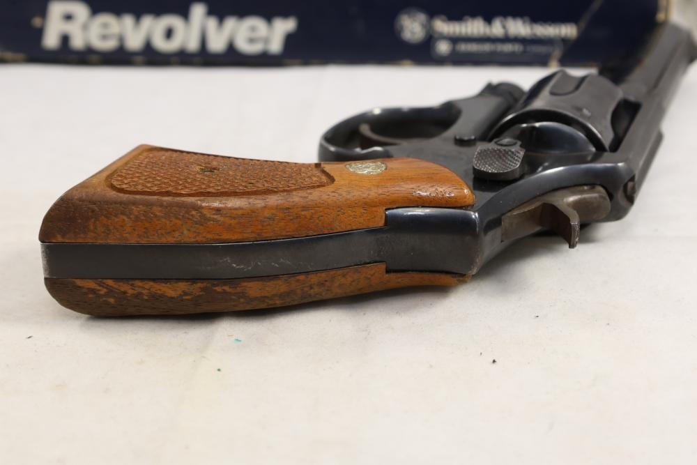 Smith & Wesson Model 10-8 revolver chambered in .38 S.&W. Special Ctg., with checkered wood grips, and the box with paperwork and cleaning rod, Serial Number ACD9287. All lots are subject to all applicable laws at the time of transfer. NOTE: Semi automatic rifles and all handguns require a license in NYS. There is a $35 transfer fee per long gun. There is a $40 transfer fee per hand gun. There is a $20 transfer fee per ammunition lot. If you fail the background check, the transfer fee still applies, and you are still required to make payment and then reconsign the lot to auction. FFL dealers are not exempt from these fees. A background check will be required for all buyers purchasing a firearm and/or ammunition. NYS charges a background check fee for all firearms and ammunition. The fee is $9 for firearms and $2.50 for ammunition. The NYS fee is per background check NOT per lot, will be collected directly by Civil Armory, and is in addition to transfer fees. All lots are subject to all applicable laws at the time of transfer. NOTE: Semi automatic rifles and all handguns require a license in NYS. There is a $35 transfer fee per long gun. There is a $40 transfer fee per hand gun. There is a $20 transfer fee per ammunition lot. If you fail the background check, the transfer fee still applies, and you are still required to make payment and then reconsign the lot to auction. FFL dealers are not exempt from these fees. A background check will be required for all buyers purchasing a firearm and/or ammunition. NYS charges a background check fee for all firearms and ammunition. The fee is $9 for firearms and $2.50 for ammunition. The NYS fee is per background check NOT per lot, will be collected directly by Civil Armory, and is in addition to transfer fees.