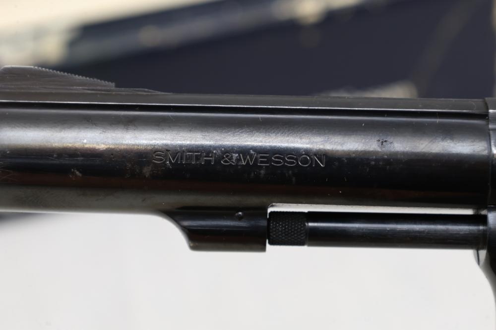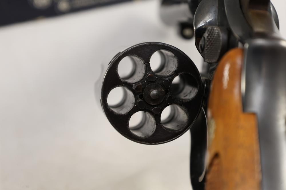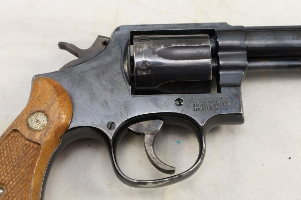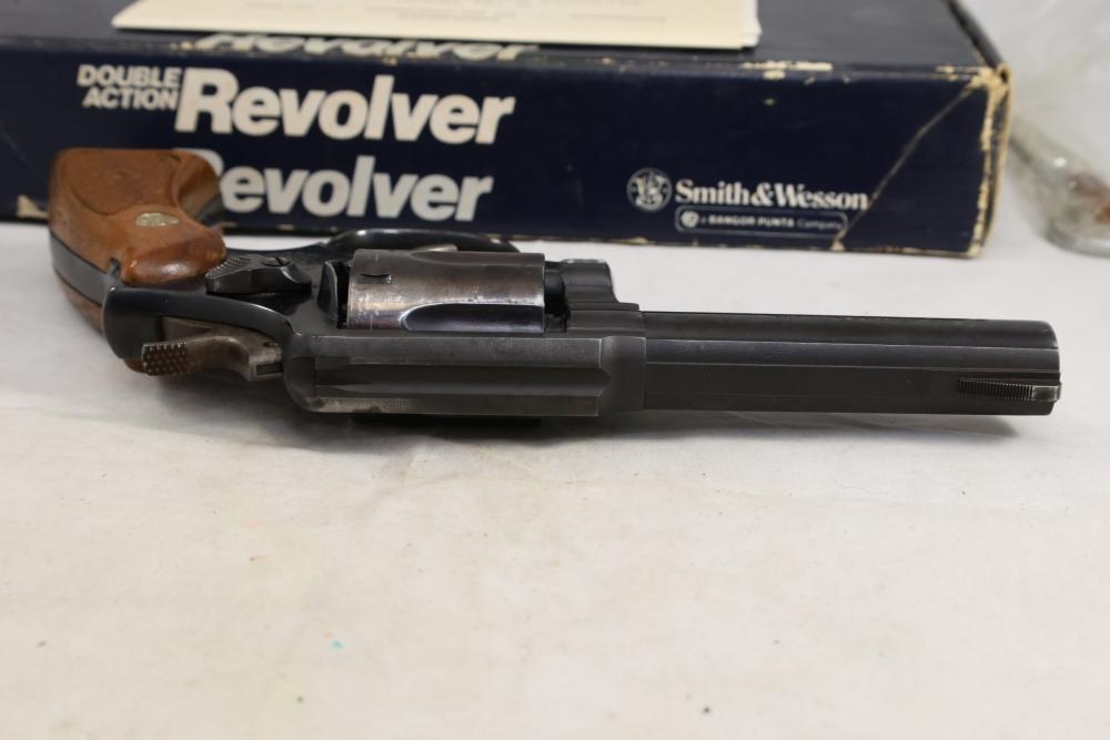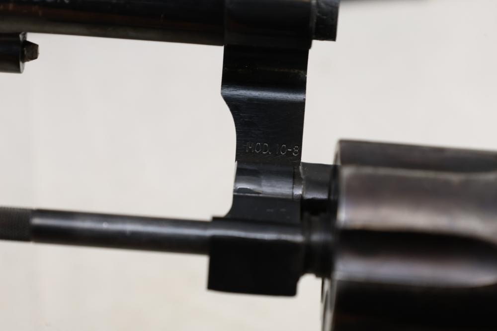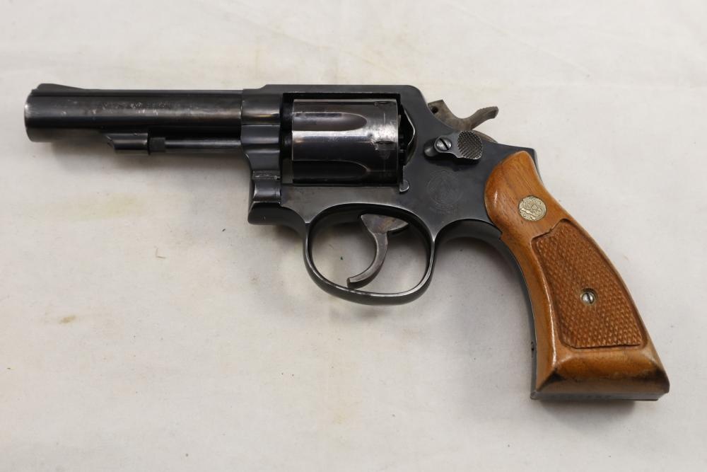 Smith & Wesson Model 10-8 revolver chambered in .38 S.&W. Special Ctg., with checkered wood grips, and the box with paperwork and cleaning rod, Serial Number ACD9287. All lots are subject to all applicable laws at the time of transfer. NOTE: Semi automatic rifles and all handguns require a license in NYS. There is a $35 transfer fee per long gun. There is a $40 transfer fee per hand gun. There is a $20 transfer fee per ammunition lot. If you fail the background check, the transfer fee still applies, and you are still required to make payment and then reconsign the lot to auction. FFL dealers are not exempt from these fees. A background check will be required for all buyers purchasing a firearm and/or ammunition. NYS charges a background check fee for all firearms and ammunition. The fee is $9 for firearms and $2.50 for ammunition. The NYS fee is per background check NOT per lot, will be collected directly by Civil Armory, and is in addition to transfer fees. All lots are subject to all applicable laws at the time of transfer. NOTE: Semi automatic rifles and all handguns require a license in NYS. There is a $35 transfer fee per long gun. There is a $40 transfer fee per hand gun. There is a $20 transfer fee per ammunition lot. If you fail the background check, the transfer fee still applies, and you are still required to make payment and then reconsign the lot to auction. FFL dealers are not exempt from these fees. A background check will be required for all buyers purchasing a firearm and/or ammunition. NYS charges a background check fee for all firearms and ammunition. The fee is $9 for firearms and $2.50 for ammunition. The NYS fee is per background check NOT per lot, will be collected directly by Civil Armory, and is in addition to transfer fees.