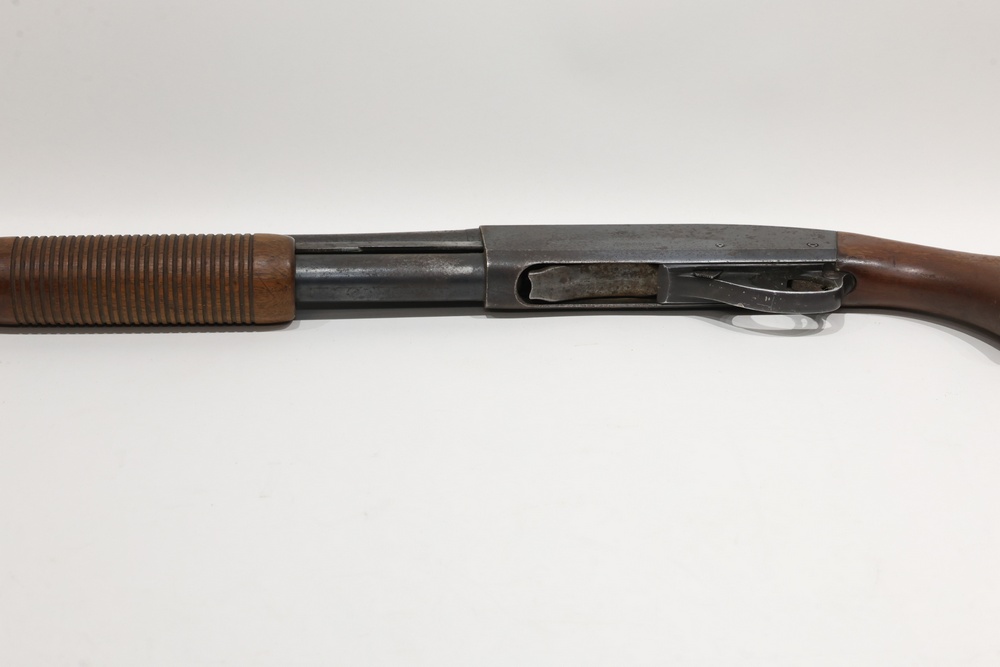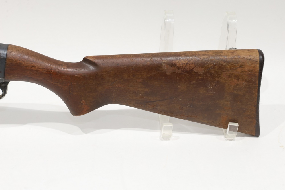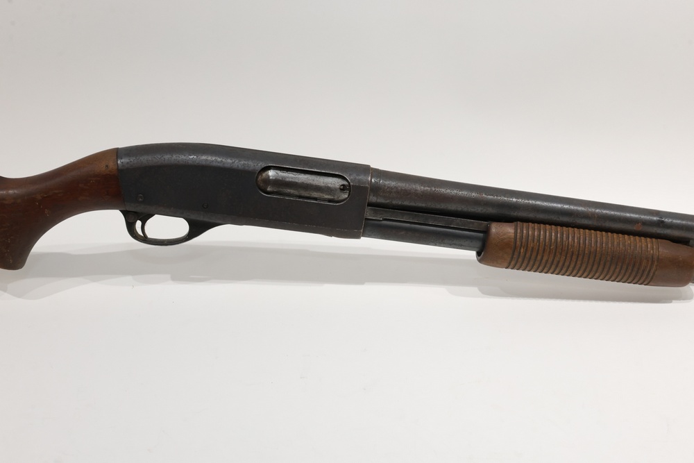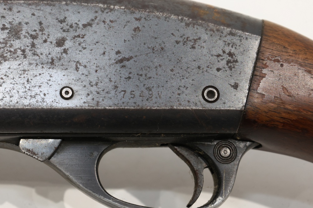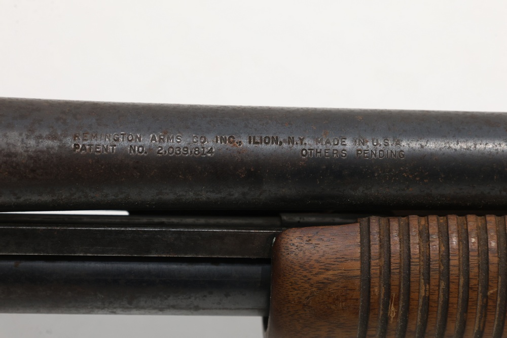 Remington Model 870 pump action shotgun chambered in 12 gauge, with a wood stock, plastic butt plate, ribbed wood forend, and iron sights. Serial Number 7549V. All lots are subject to all applicable laws at the time of transfer. NOTE: Semi automatic rifles and all handguns require a license in NYS. There is a $35 transfer fee per long gun. There is a $40 transfer fee per hand gun. There is a $20 transfer fee per ammunition lot. If you fail the background check, the transfer fee still applies, and you are still required to make payment and then reconsign the lot to auction. FFL dealers are not exempt from these fees. A background check will be required for all buyers purchasing a firearm and/or ammunition. NYS charges a background check fee for all firearms and ammunition. The fee is $9 for firearms and $2.50 for ammunition. The NYS fee is per background check NOT per lot, will be collected directly by Civil Armory, and is in addition to any transfer All lots are subject to all applicable laws at the time of transfer. NOTE: Semi automatic rifles and all handguns require a license in NYS. There is a $35 transfer fee per long gun. There is a $40 transfer fee per hand gun. There is a $20 transfer fee per ammunition lot. If you fail the background check, the transfer fee still applies, and you are still required to make payment and then reconsign the lot to auction. FFL dealers are not exempt from these fees. A background check will be required for all buyers purchasing a firearm and/or ammunition. NYS charges a background check fee for all firearms and ammunition. The fee is $9 for firearms and $2.50 for ammunition. The NYS fee is per background check NOT per lot, will be collected directly by Civil Armory, and is in addition to any transfer