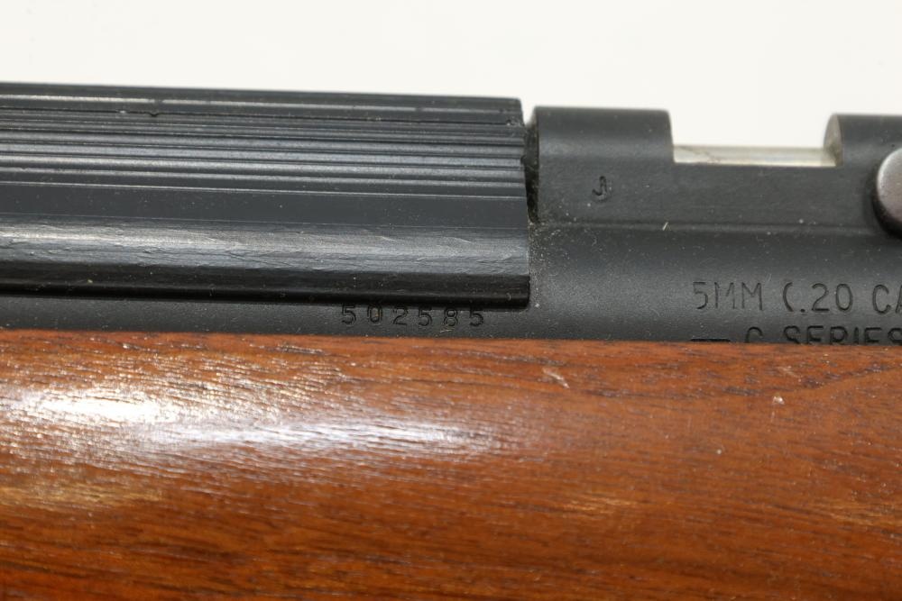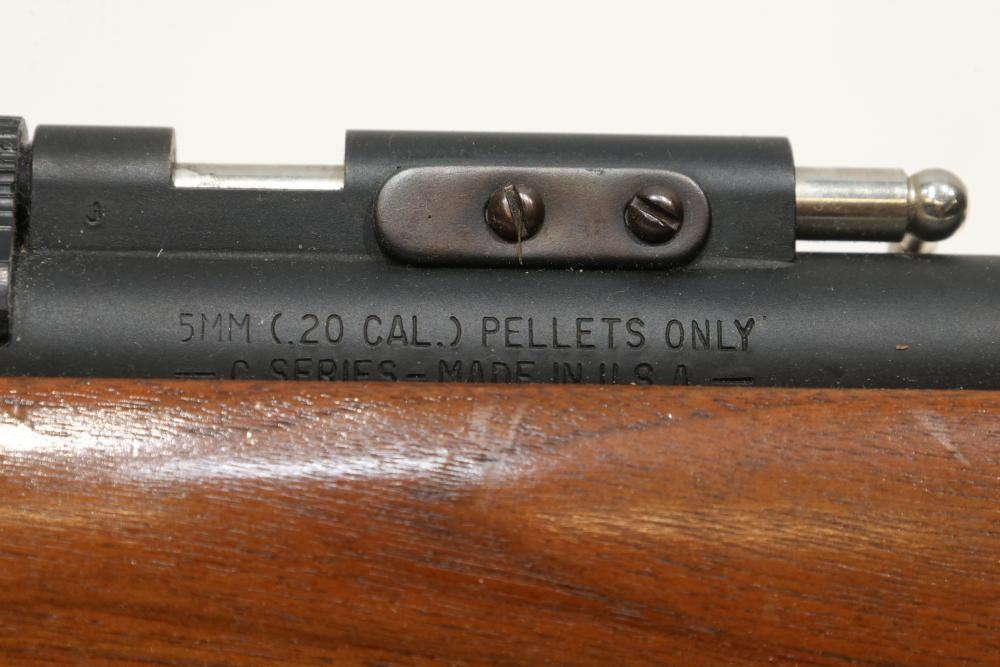 Sheridan Products air rifle marked “5MM (.20 CAL.) PELLETS ONLY” and “C SERIES – MADE IN U.S.A.” with wood stock; Serial Number 502585. All lots are subject to all applicable laws at the time of transfer. NOTE: Semi automatic rifles and all handguns require a license in NYS. There is a $35 transfer fee per long gun. There is a $40 transfer fee per hand gun. There is a $20 transfer fee per ammunition lot. If you fail the background check, the transfer fee still applies, and you are still required to make payment and then reconsign the lot to auction. FFL dealers are not exempt from these fees. A background check will be required for all buyers purchasing a firearm and/or ammunition. NYS charges a background check fee for all firearms and ammunition. The fee is $9 for firearms and $2.50 for ammunition. The NYS fee is per background check NOT per lot, will be collected directly by Civil Armory, and is in addition to transfer fees. All lots are subject to all applicable laws at the time of transfer. NOTE: Semi automatic rifles and all handguns require a license in NYS. There is a $35 transfer fee per long gun. There is a $40 transfer fee per hand gun. There is a $20 transfer fee per ammunition lot. If you fail the background check, the transfer fee still applies, and you are still required to make payment and then reconsign the lot to auction. FFL dealers are not exempt from these fees. A background check will be required for all buyers purchasing a firearm and/or ammunition. NYS charges a background check fee for all firearms and ammunition. The fee is $9 for firearms and $2.50 for ammunition. The NYS fee is per background check NOT per lot, will be collected directly by Civil Armory, and is in addition to transfer fees.