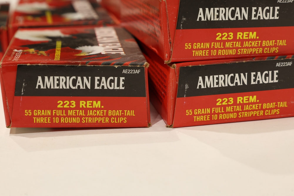 14 boxes of American Eagle .223 Remington rifle ammunition, 55 grain full metal jacket boat-tail, including multiple factory boxes and one open box with loose cartridges visible. All lots are subject to all applicable laws at the time of transfer. NOTE: Semi automatic rifles and all handguns require a license in NYS. There is a $35 transfer fee per long gun. There is a $40 transfer fee per hand gun. There is a $20 transfer fee per ammunition lot. If you fail the background check, the transfer fee still applies, and you are still required to make payment and then reconsign the lot to auction. FFL dealers are not exempt from these fees. A background check will be required for all buyers purchasing a firearm and/or ammunition. NYS charges a background check fee for all firearms and ammunition. The fee is $9 for firearms and $2.50 for ammunition. The NYS fee is per background check NOT per lot, will be collected directly by Civil Armory, and is in addition to transfer fees.