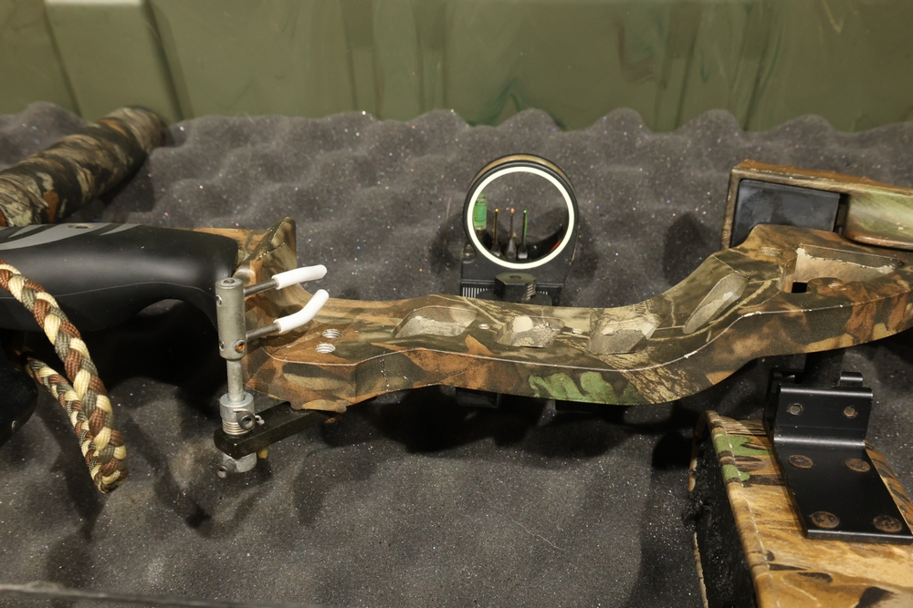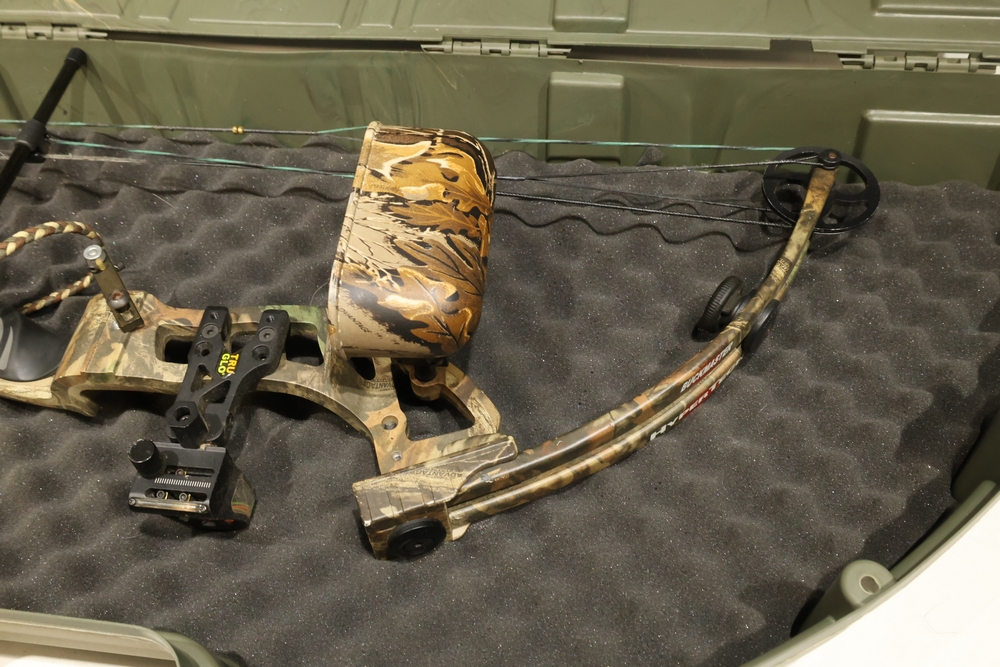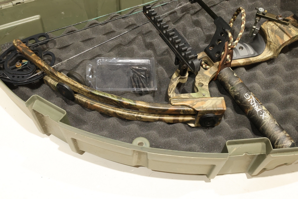 Buckmaster HyperTech compound bow with camouflage finish, mounted sight, arrow rest, quiver, and stabilizer, housed in a hard plastic bow case with arrows present, serial number 633861. All lots are subject to all applicable laws at the time of transfer. NOTE: Semi automatic rifles and all handguns require a license in NYS. There is a $35 transfer fee per long gun. There is a $40 transfer fee per hand gun. There is a $20 transfer fee per ammunition lot. If you fail the background check, the transfer fee still applies, and you are still required to make payment and then reconsign the lot to auction. FFL dealers are not exempt from these fees. A background check will be required for all buyers purchasing a firearm and/or ammunition. NYS charges a background check fee for all firearms and ammunition. The fee is $9 for firearms and $2.50 for ammunition. The NYS fee is per background check NOT per lot, will be collected directly by Civil Armory, and is in addition to transfer fees.