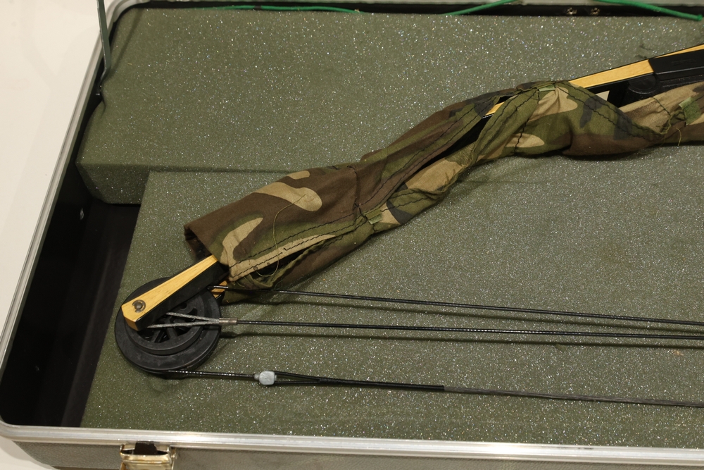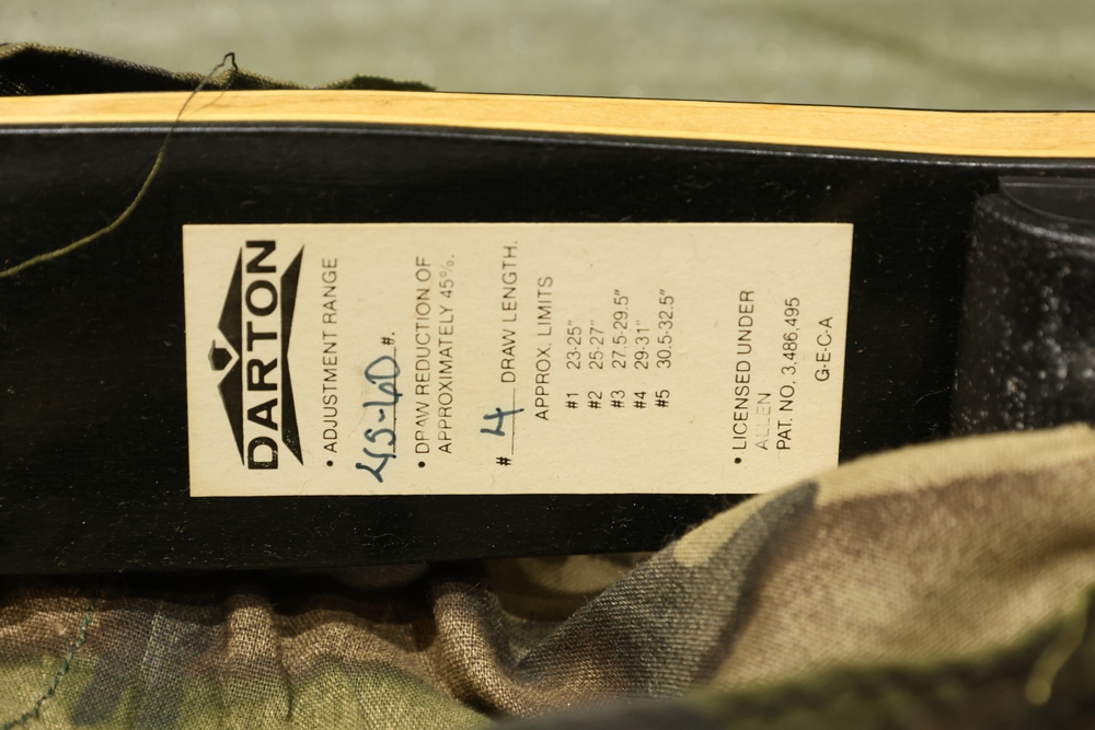 Darton SL50 compound bow, made in the USA. Marked “Model SL50,” serial number C-08851. Bow is equipped with a cable guard, stabilizer, and arrow rest. Includes a fitted hard bow case and visible accessories as shown, including arrows stored in the case lid. Draw weight and draw length are marked on the bow (see photos for details). All lots are subject to all applicable laws at the time of transfer. NOTE: Semi automatic rifles and all handguns require a license in NYS. There is a $35 transfer fee per long gun. There is a $40 transfer fee per hand gun. There is a $20 transfer fee per ammunition lot. If you fail the background check, the transfer fee still applies, and you are still required to make payment and then reconsign the lot to auction. FFL dealers are not exempt from these fees. A background check will be required for all buyers purchasing a firearm and/or ammunition. NYS charges a background check fee for all firearms and ammunition. The fee is $9 for firearms and $2.50 for ammunition. The NYS fee is per background check NOT per lot, will be collected directly by Civil Armory, and is in addition to transfer fees.