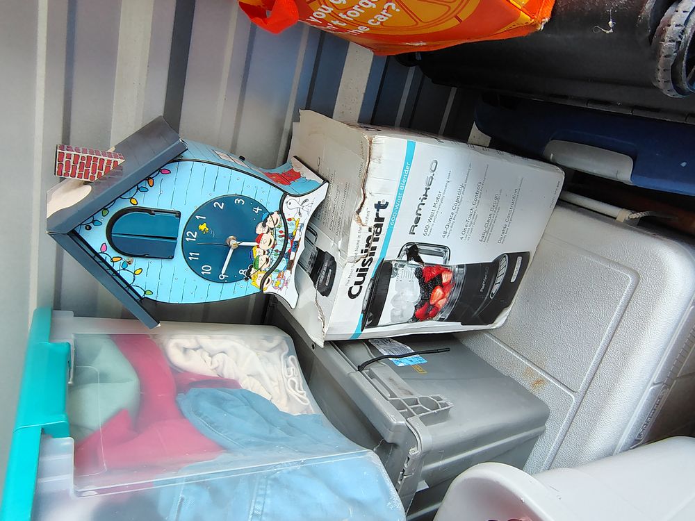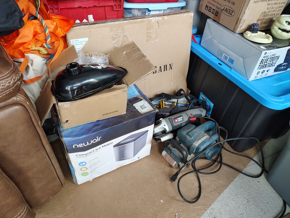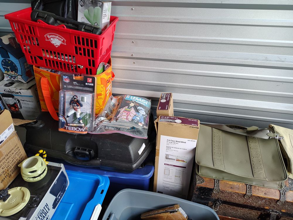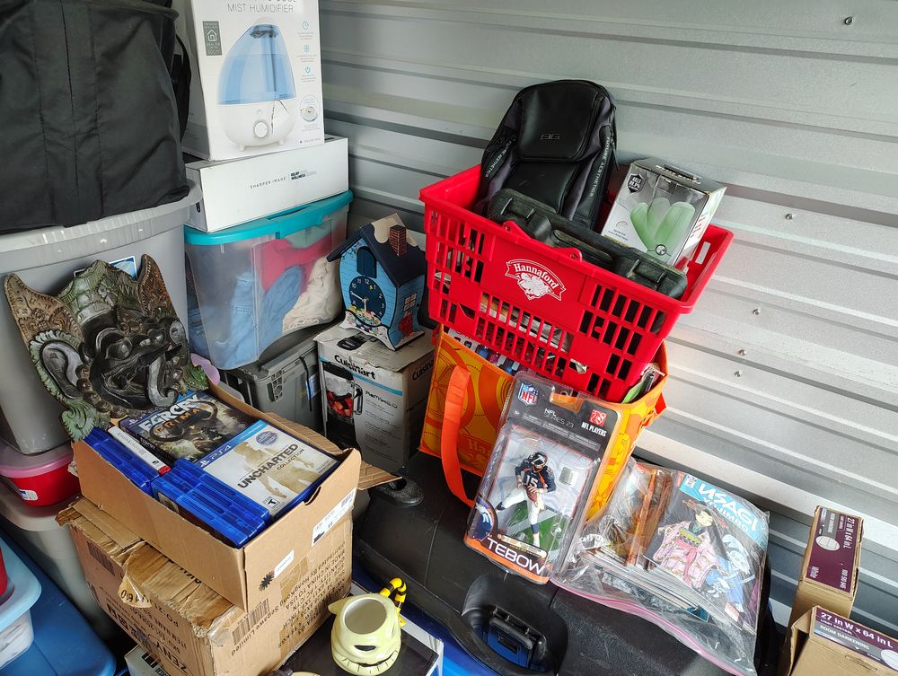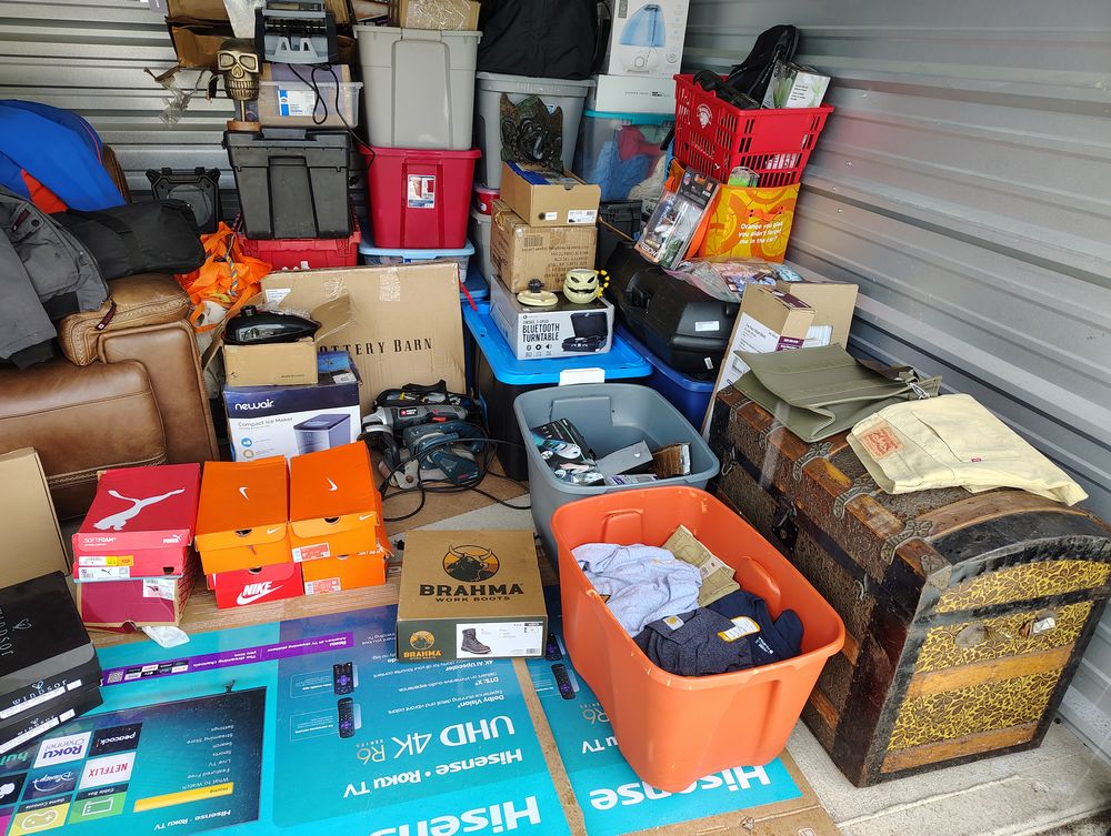 Contents of a 10'' x 10' storage unit being sold by the storage unit owner. Items include a wide variety of household to personal items, clothing, shoes, boots, furniture, Iranian Trabiaz rug, live edge wood table, tools, small appliances, collectibles. Seller states "Ninety percent of everything in the unit is brand new including top name brand name clothing to money counters, new dog items," old trunk, comic books. The functionality of electric/electronic items are unknown. The authenticity of items are unknown/have not been checked. The unit is located in Craryville, NY.