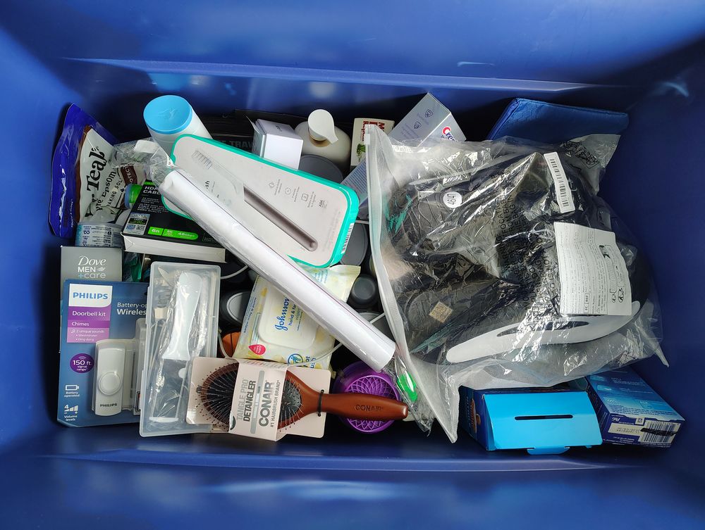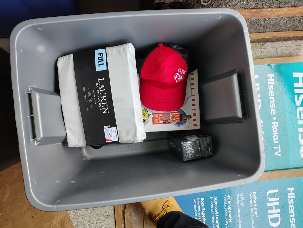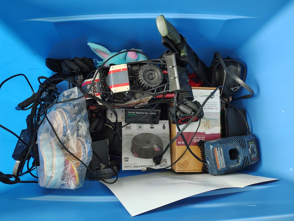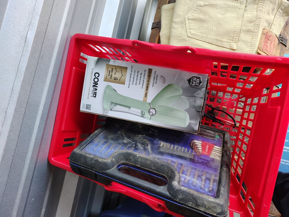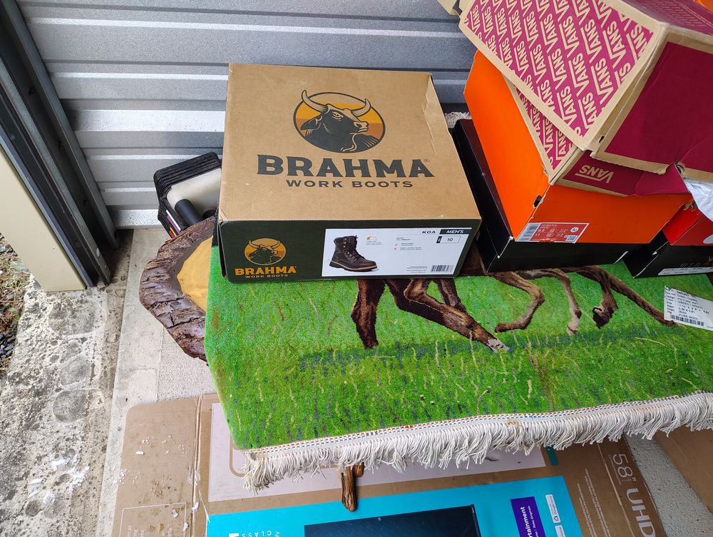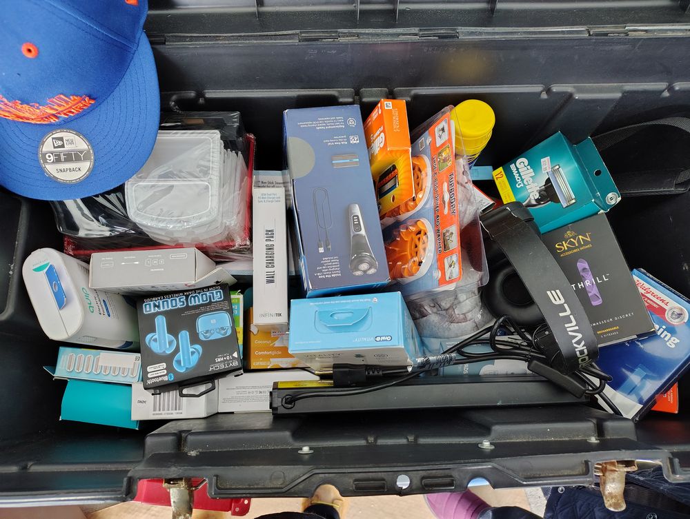 Contents of a 10'' x 10' storage unit being sold by the storage unit owner. Items include a wide variety of household to personal items, clothing, shoes, boots, furniture, Iranian Trabiaz rug, live edge wood table, tools, small appliances, collectibles. Seller states "Ninety percent of everything in the unit is brand new including top name brand name clothing to money counters, new dog items," old trunk, comic books. The functionality of electric/electronic items are unknown. The authenticity of items are unknown/have not been checked. The unit is located in Craryville, NY.