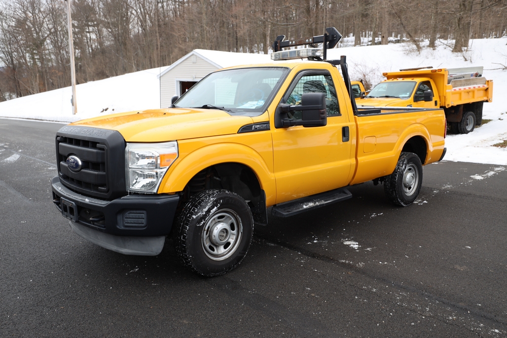 2008 Ford F-250 Super Duty XL pickup truck; 2008 Ford F-450 Super Duty dump truck; 2011 Ford F-250 Super Duty XL; 1998 International 4700 dump truck; Husqvarna leaf vac & chain saws; Ryobi 7000 generators; spider baskets; LED head lights; Sullair jackhammers; Paladin 48" sweeper broom; Binks air compressor & more. Items are located in Highland & Catskill, NY.
