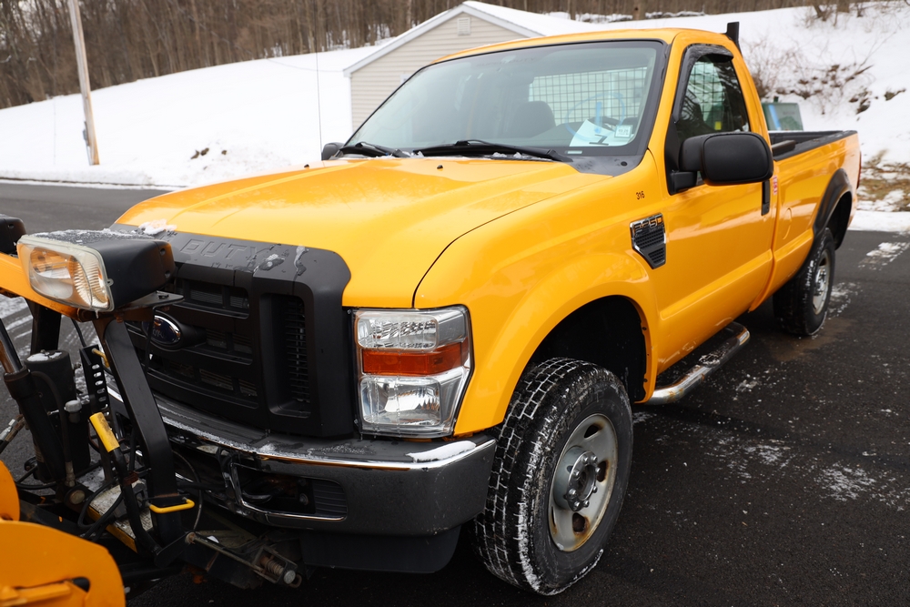 2008 Ford F-250 Super Duty XL Pickup Truck. VIN: 1FTNF21568ED78896. Body: Regular Cab 2D. Engine: 5.4L V8 SMPI Gasoline. Odometer reading: 99160, Hours reading: 6299. Runs, drives. Fisher 8' Snow Plow, 4X4. High Miles, Has check engine light for EVAP leaks, bed mounts are rusted off, door sensors don’t work, replacement passenger door. Title & key available. Location: Mid Hudson.