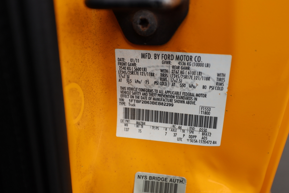2011 Ford F-250 Super Duty XL. VIN: 1FTBF2B63BEB82299. Body: Regular Cab 2D. Engine: 6.2L V8 SEFI Flex Fuel. Odometer reading: 104959, Hours reading: 5514. Runs, drives. 4X4, Backrack Safety Rack. High Miles, aftermarker fender flares. Title & key available. Location: Mid Hudson.