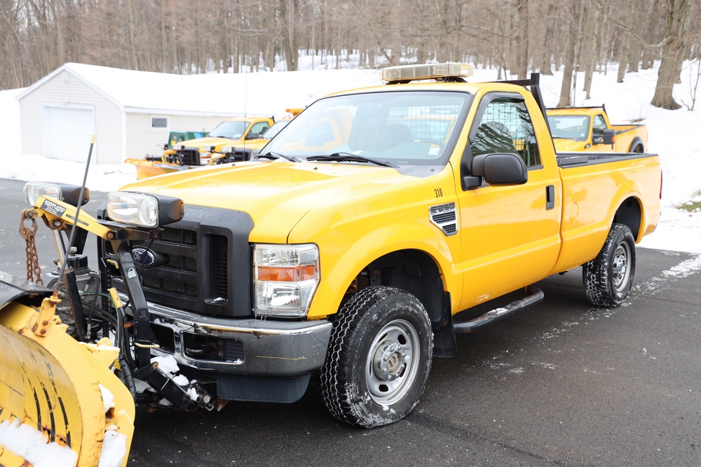 2008 Ford F-250 Super Duty XL pickup truck; 2008 Ford F-450 Super Duty dump truck; 2011 Ford F-250 Super Duty XL; 1998 International 4700 dump truck; Husqvarna leaf vac & chain saws; Ryobi 7000 generators; spider baskets; LED head lights; Sullair jackhammers; Paladin 48" sweeper broom; Binks air compressor & more. Items are located in Highland & Catskill, NY.