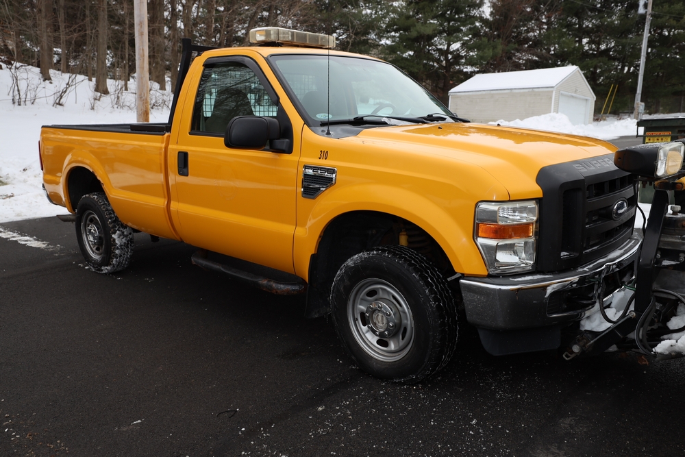 2008 Ford F-250 Super Duty XL. VIN: 1FTNF21598EC11514. Body: Regular Cab 2D. Engine: 5.4L V8 SMPI Gasoline. Odometer reading: 71872, Hours reading: 4533. Runs, drives. Fisher 8'-10' Expandable Plow, 4X4, Backrack Safety Rack. Runs good, new exhaust system, and new gas tank straps. Title & key available. Location: Mid Hudson.