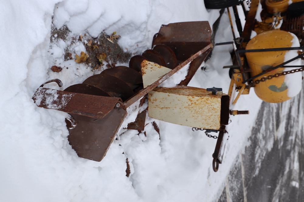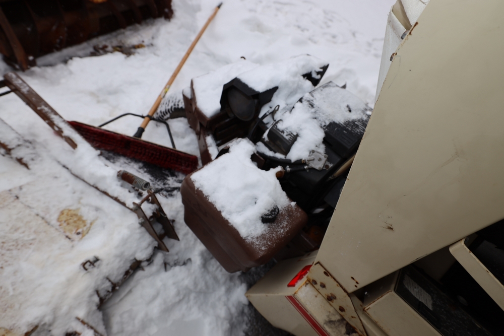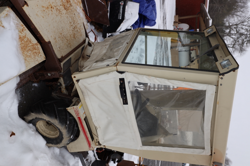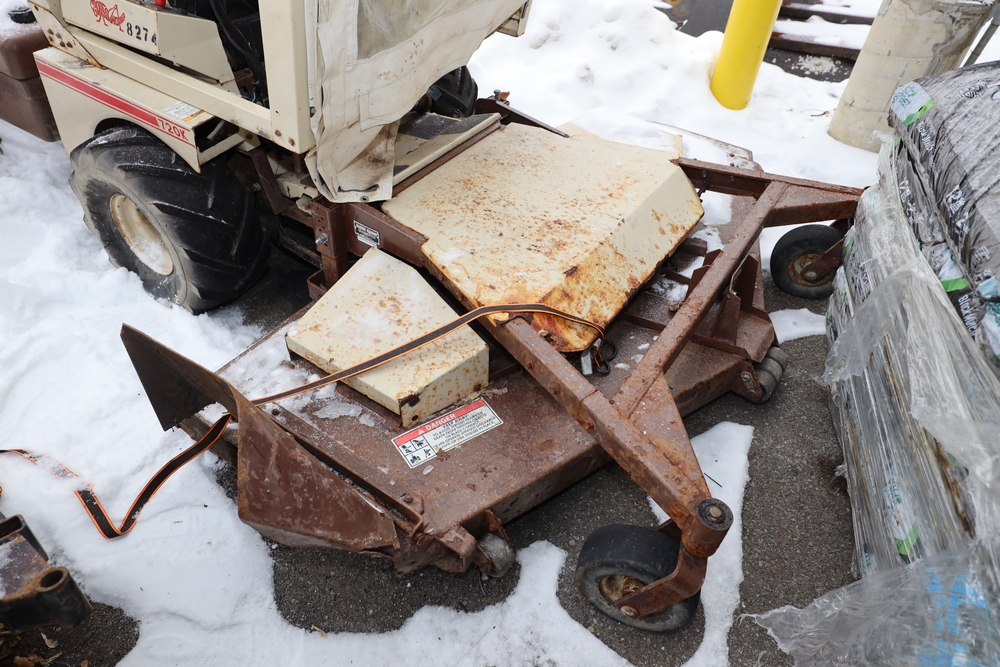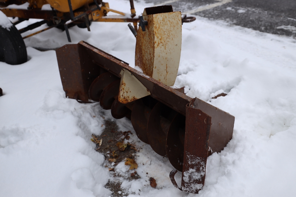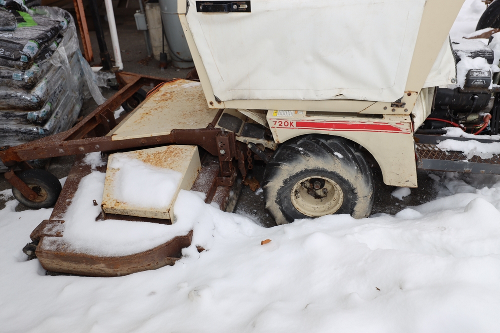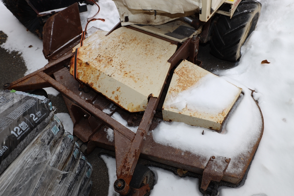 Grasshopper Riding Mower with removable cab and two mower decks. Includes Grasshopper Snow Blower. Seller reports: operational when last used; snowblower attachment was running, needs a motor, partially dissassembled. Location: Rip Van Winkle.