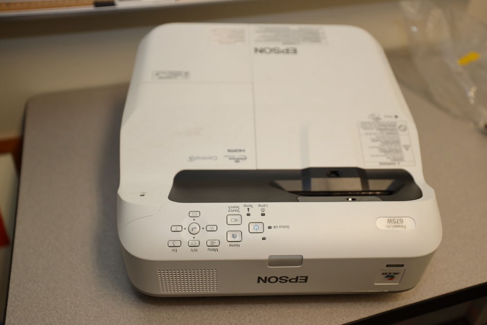 (1) Epson PowerLite 675W 3200-Lumen WXGA Ultra-Short Throw 3LCD Projector. In box, includes setting plate mount. Photos shown for reference.