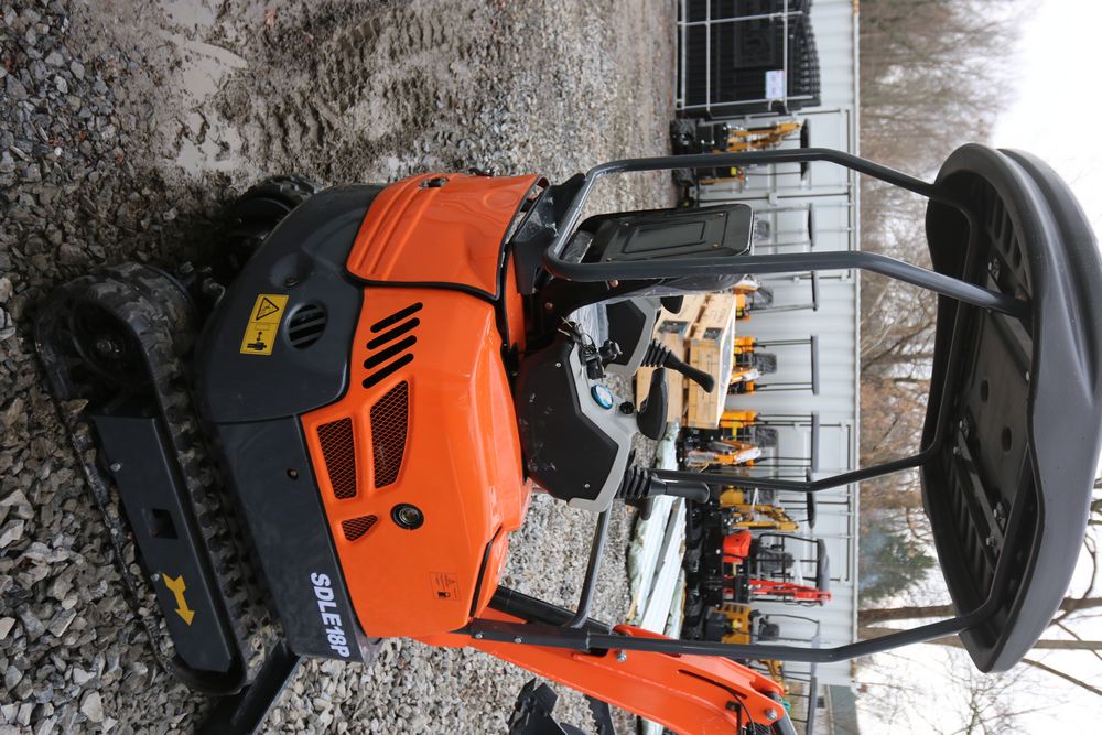 New 2025 IR mini excavator model IRE18P with bucket, thumb, and RATO 420 gas engine. Hours reading less than 1 hour.