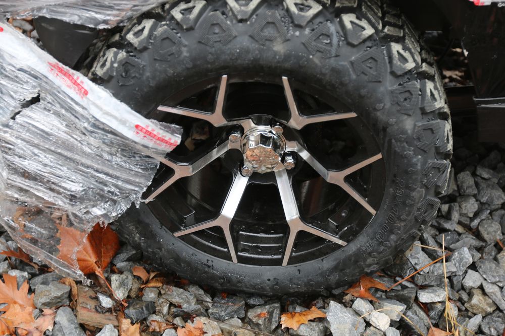 New 2025 electric golf cart model SDLGC100 with DOT acrylic foldable windshield, six luxury seats with headrests, foldable rear seat, 14in off-road tires, 10.1-inch display, and 5000W Ac motor. Comes disassembled. Appearing to have all parts included.