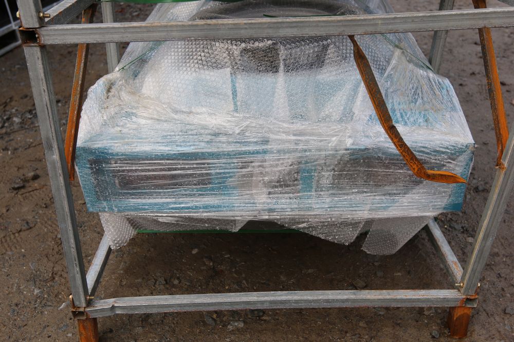New 2025 electric three wheeled golf cart with dump body model IRET13 with 800W motor, LCD display, and comfortable luxury double seat. Comes disassembled. Appearing to have all parts included.