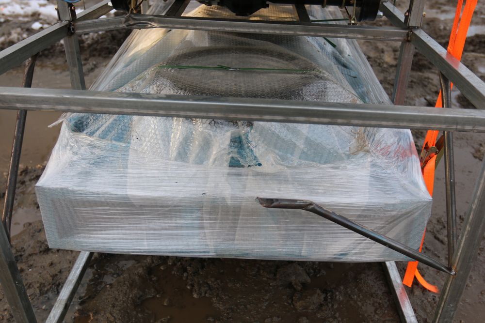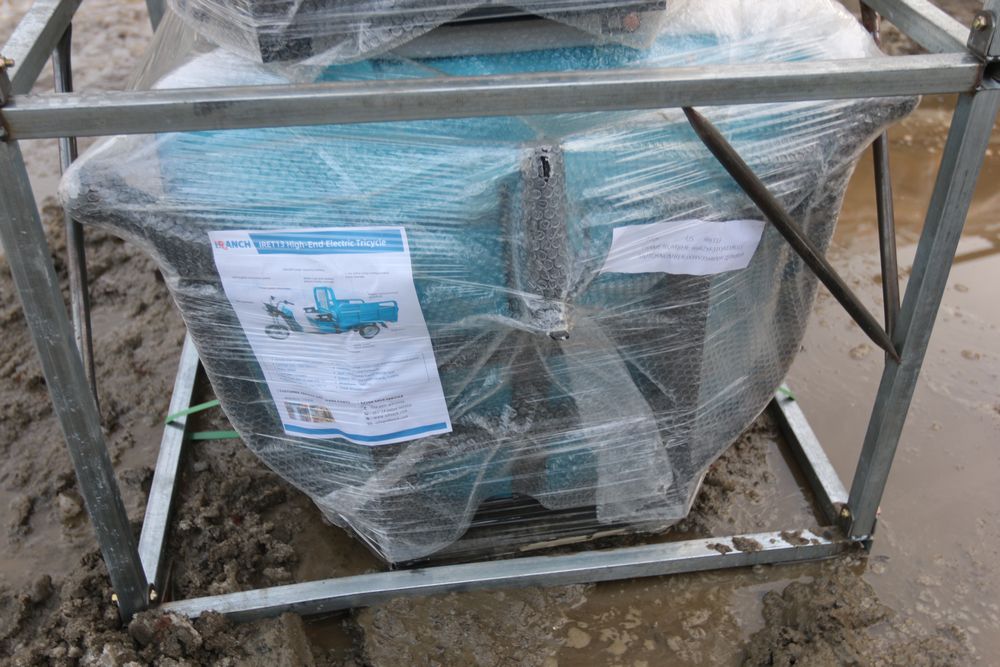 New 2025 mini three wheeled golf cart with dump body. Battery operated. Comes disassembled, appearing to be complete.