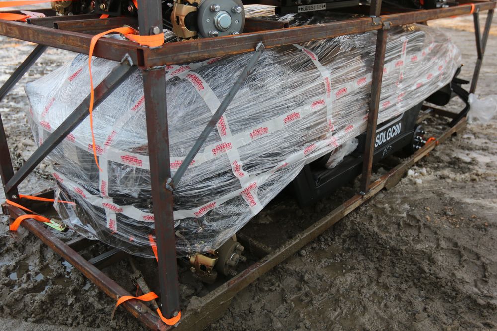 New 2025 IR golf cart model IRGC80, seats four, top speed of 23-24mph, 4KW AC motor, canopy cover, front window, brush guard.. Comes disassembled, appearing to be complete.