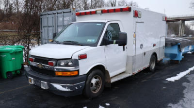 Items include 2009 Mack GU813 garbage truck, 2004 Mack CV713 Granite dump truck, 1994 GMC C7H042 service truck, 2017 Chevrolet Express G3500 cutaway ambulance, 2016 Ford F-250 Super Duty XLT 4WD pickup, 2017 Chevrolet Express G2500 cargo van, 2015 Ford F-250 Super Duty XLT 4WD pickup, 2014 Chevrolet Tahoe Police, 2005 Bobcat S250 Turbo skid steer loader, and more. Items are located in Ardsley NY.NY.