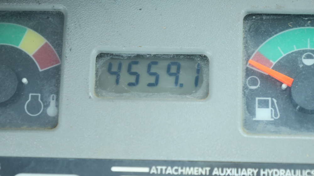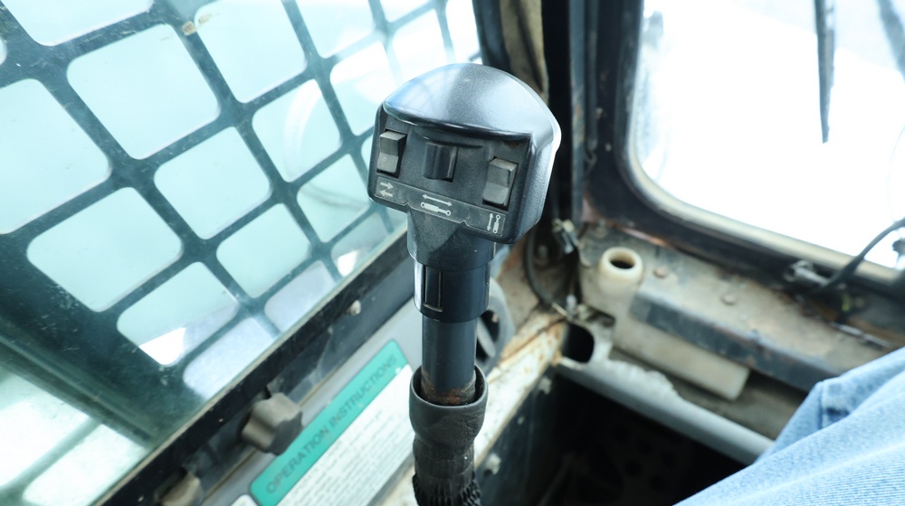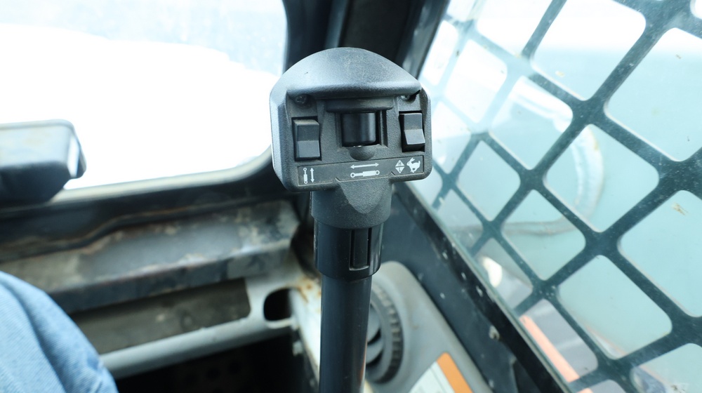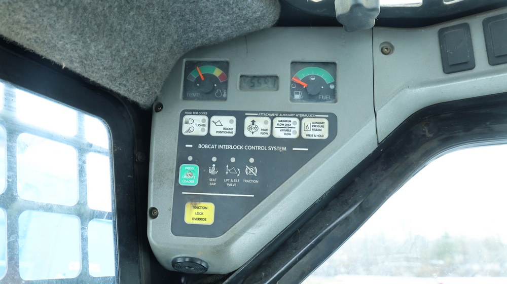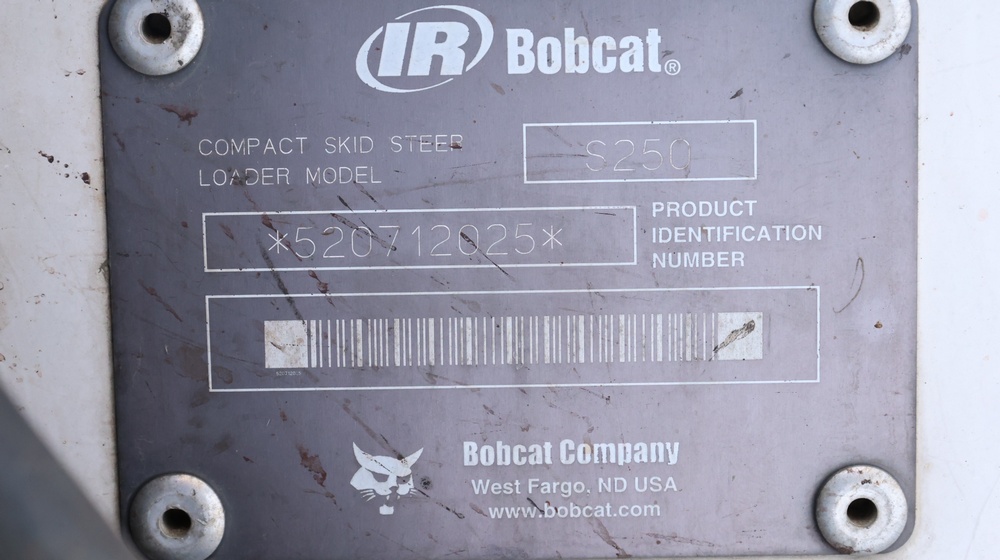 2005 Bobcat S250 Turbo skid steer loader, Product Identification Number 520712025, showing 4,559 hours. Equipped with Bobcat combo bucket, model 74 COMBO BKT, serial number 43140346. Includes enclosed cab, auxiliary hydraulics, and selectable joystick controls. Bucket cylinders and hydraulic couplers visible. Seller reports: Rusty, runs and drives, key available. Must be towed.