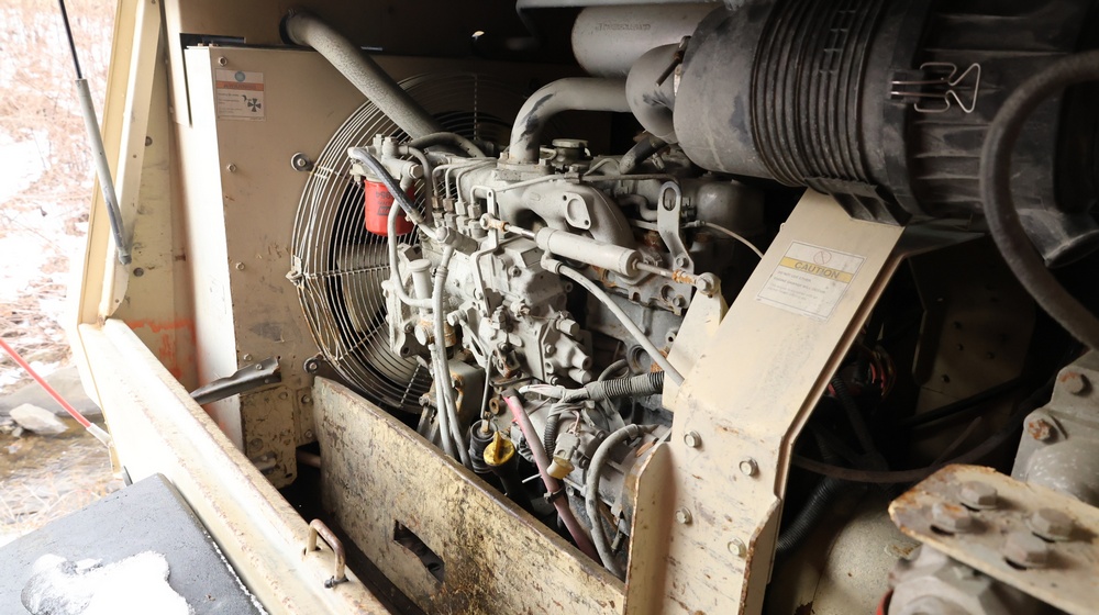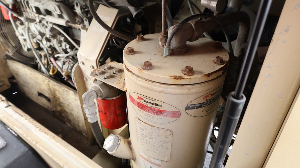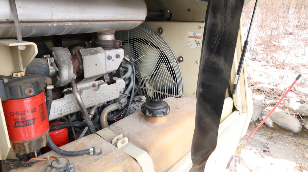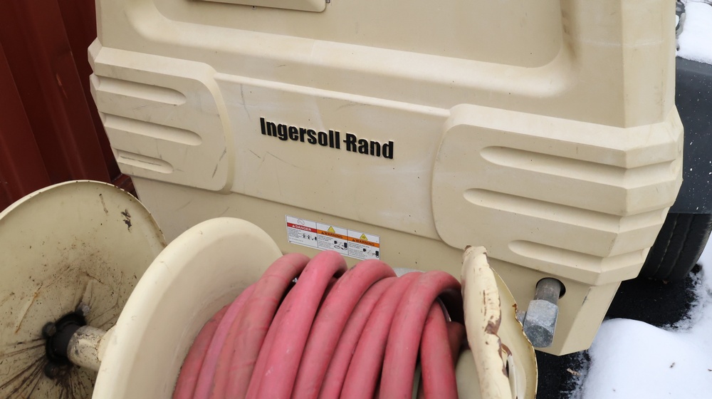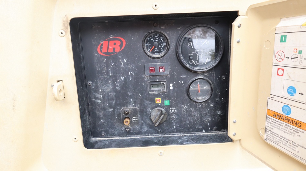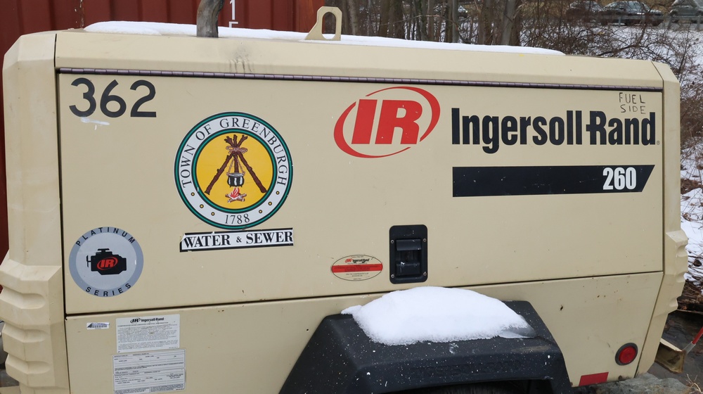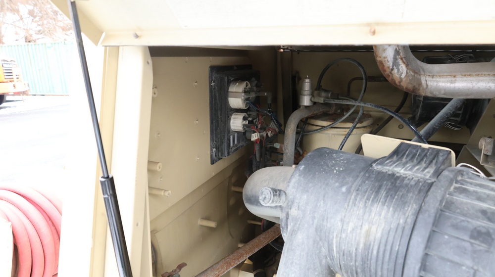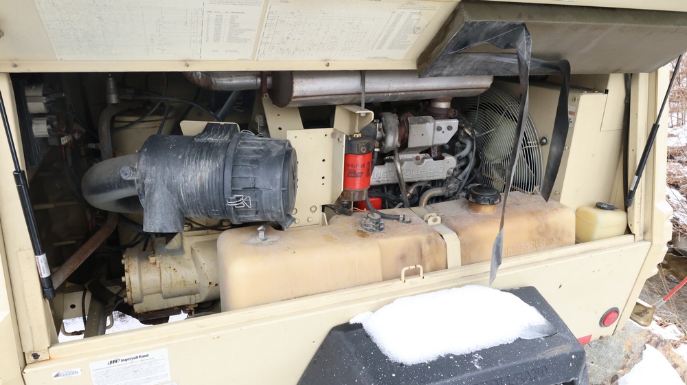 2002 Ingersoll-Rand 260 towable air compressor, VIN: 4FVCABA62U3293278. Meter reads 763.9 hours. Trailer GVWR: 3,334 lbs. Tire size: P215/75R15. Equipped with pintle hitch, dual hose reels, and diesel engine (inline 4-cylinder). Seller reports: operational. Must be towed.