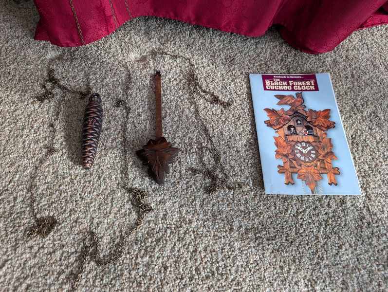 Quality Clocks, Barometer, featuring Howard Miller. Black Forest cuckoo clock with manual, 8"Wx1'H; coord Bavarian weather house, 9"Wx1'H; Howard Miller mantle clock, 8"Wx5"Dx10"H; wall barometer, 7"Wx19"H. See photos for more details.