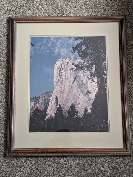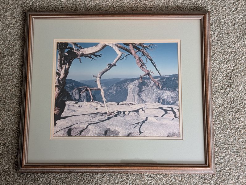 Four Pieces Photographic Art. All pieces wood framed & matted, behind glass: lg'est, 2'Hx29"H; others, ea 18"Wx20"H. Mt. McKinley, & Yosemite Park