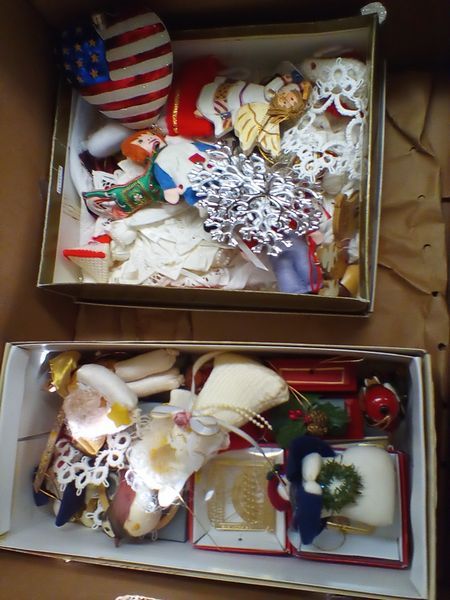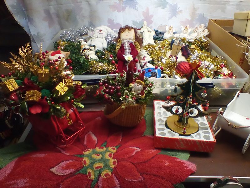 Seasonal Décor, featuring Hummel and Radko. Glass ornaments by Radko (see photo) and Hummel (boxed); artificial décor (winter & fall); other ornaments. See photos for qty and details. Loc in basement.