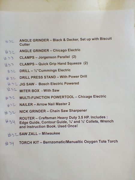 All lots sold as is, where is. There is a 18% Buyers Premium for all lots purchased. Payment methods for non-vehicle & non-equipment is cash, Visa, Master Card or Discover card.