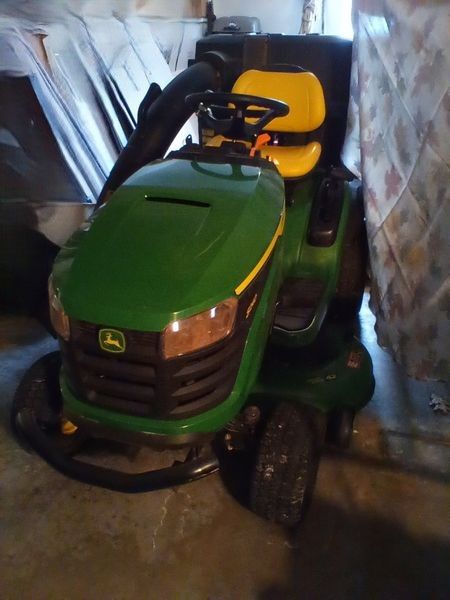 John Deere Riding Mower with Bagger. John Deer riding mower S240, 42" deep with bagger. Seller states "It is a year old & in working order."