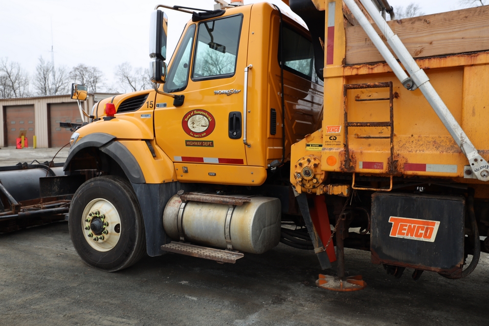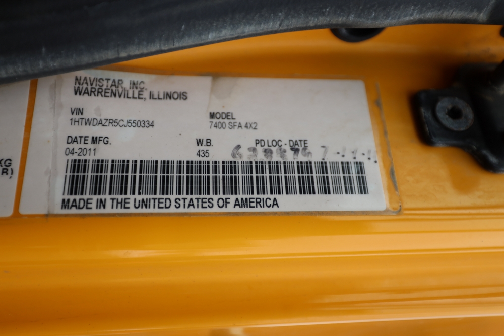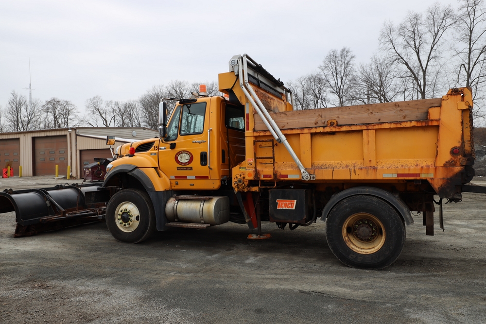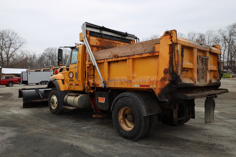 2012 International WorkStar 7400 Dump Truck 4X2. VIN: 1HTWDAZR5CJ550334. Odometer reading: 44,508. Hours reading: 3364. Body: Chassis 2D. Engine: 9.3L I6 CRDI Diesel. Allison transmission. Tenco dump body and plows. Seller reports: hydraulic valve body leak, needs replacement; Newer sander chain, rollers, bearings, grease adjusters, and injectors. Runs, drives, operates. Regularly maintained. Title & key available.