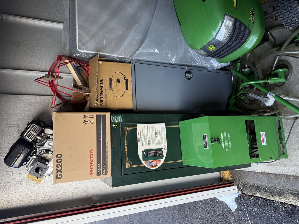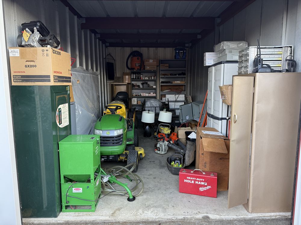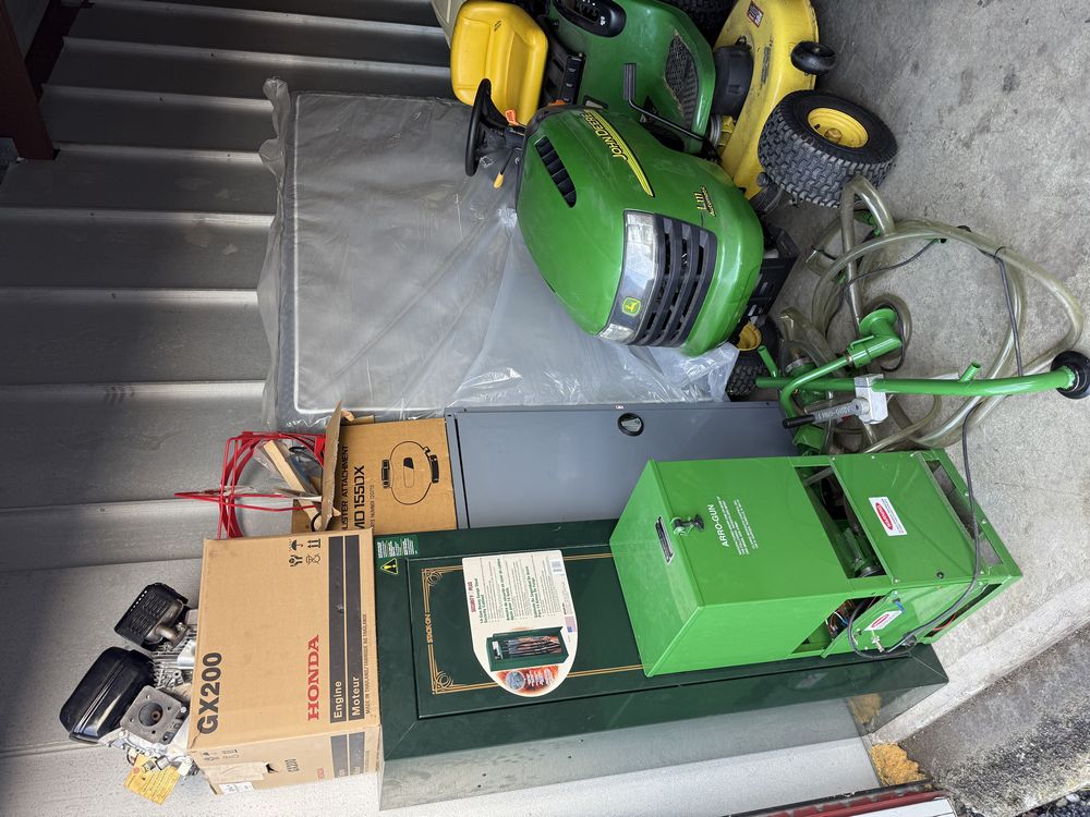 Contents of a 10' x 20' storage unit being sold by the storage unit owner. This storage unit contains a variety of equipment, tools & materials. Items include a John Deere lawn mower, Cub Cadet tractor, landscape trailer, vacuums, Honda motor, Milwaukee tools, Hilti tool, Eemax EX200TC hot water heater (new), Echo blowers, chainsaw, Poulan equipment, SunStar heater (new), tool cabinets, safe cabinet, Arro-Gun tool, miscellaneous motors, tiles, sealants, Isuzu engine filters, mattress (new), miscellaneous tools, bed liner paint, miscellaneous lighting, Chapin batteries, power supplies, speed reducer & a Liquidynamics oil extractor. The functionality of electric/electronic items are unknown/not tested. The authenticity of items have not been verified or guaranteed on any/all items. Items are located in Wappingers Falls, NY.