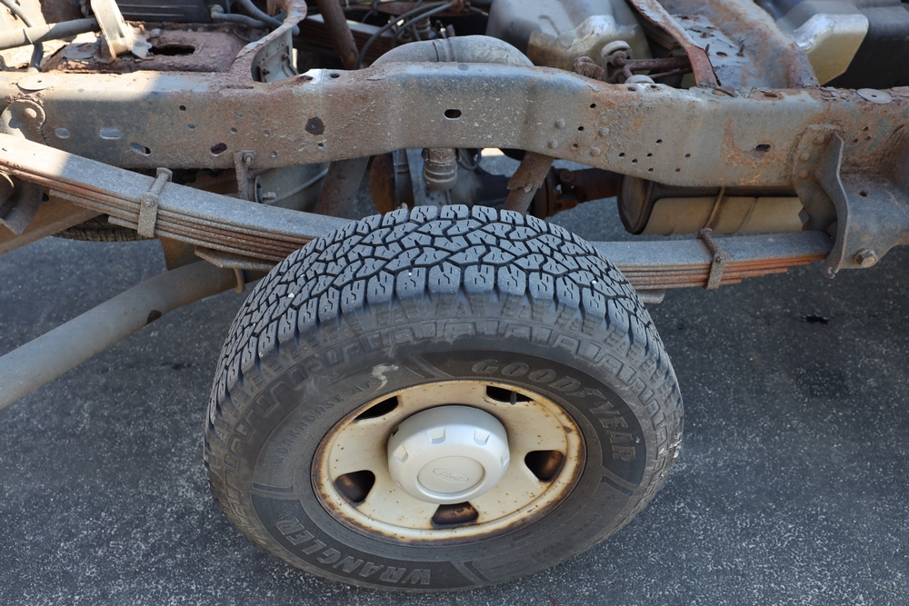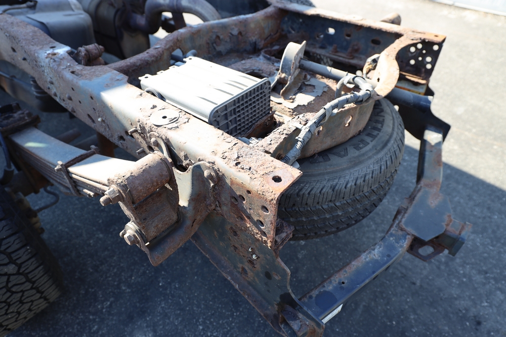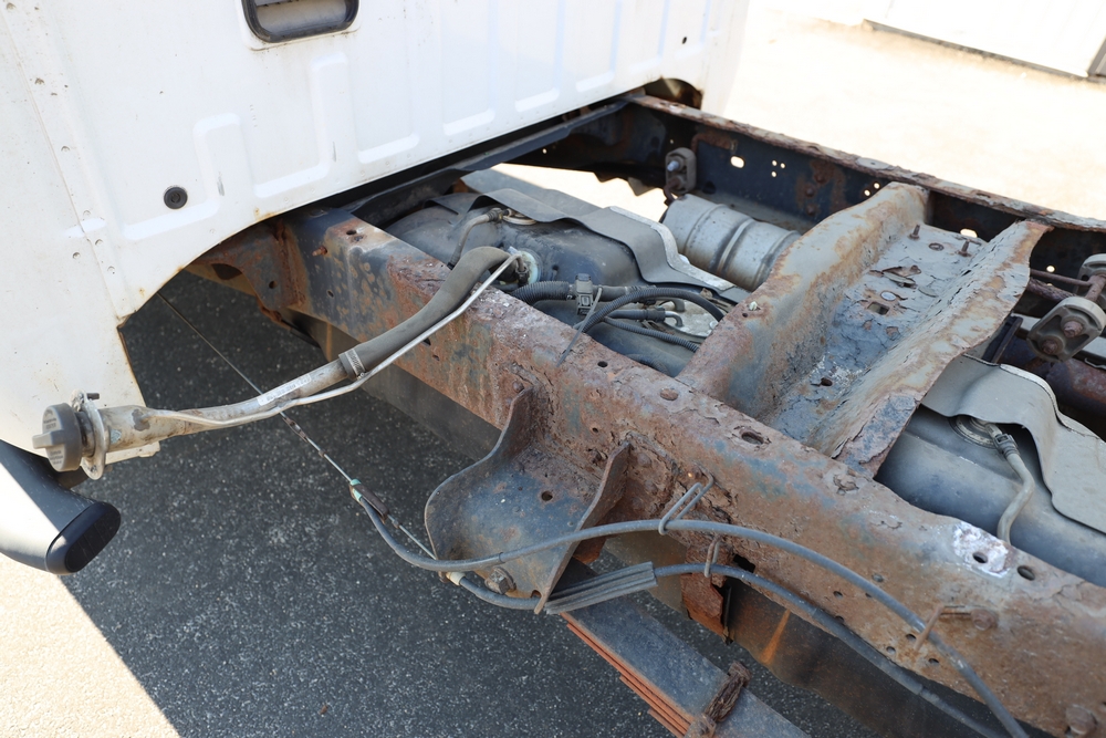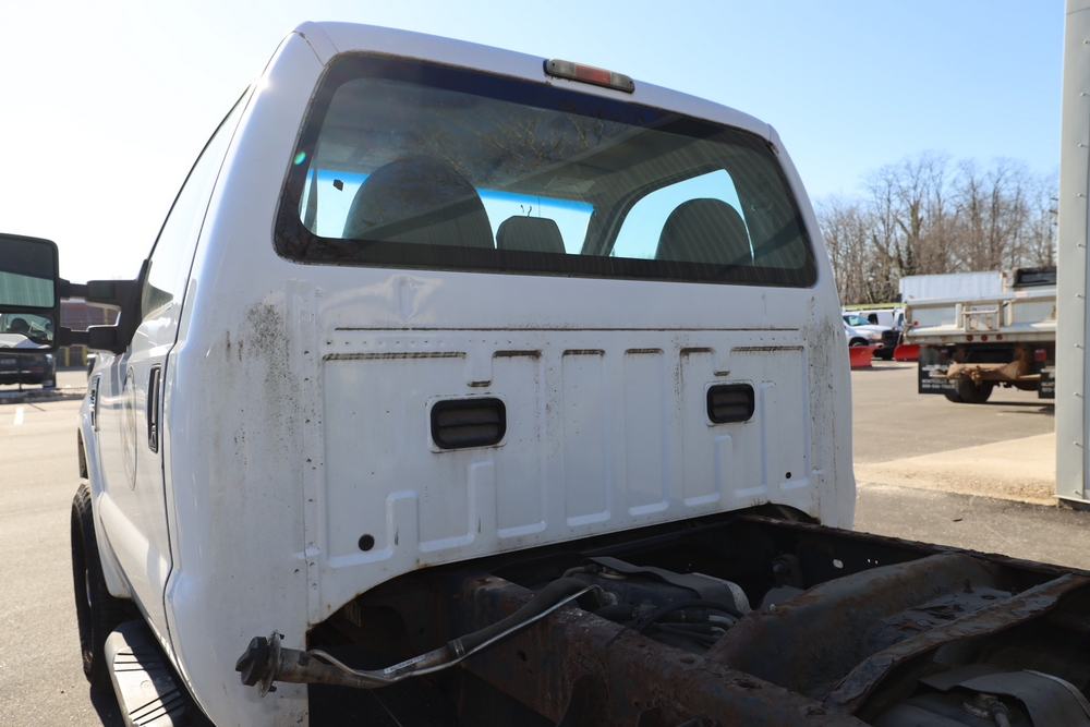 2008 Ford F-250 Super Duty XL cab & chassis. VIN: 1FTNF21578EA54954. Body: Regular Cab 2D. Engine: 5.4L V8 SMPI Gasoline. Odometer reading: 115673. Seller reports: Frame Deteriorated/Rusted, Suspension mounting points rotted (shown in photo), cracked windshield.