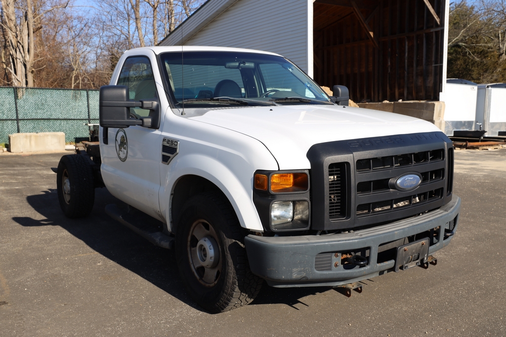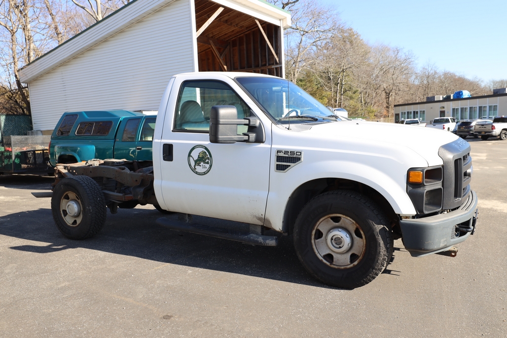 Items include 2008 Ford F-250 Super Duty XL cab & chassis; 2006 Dodge Caravan C/V; 2006 Ford Crown Victoria Police Interceptor; Fermec 750 back hoe loader; golf cart & Hustler Super Z 72" mower. Items are located in Middle Island, NY.
