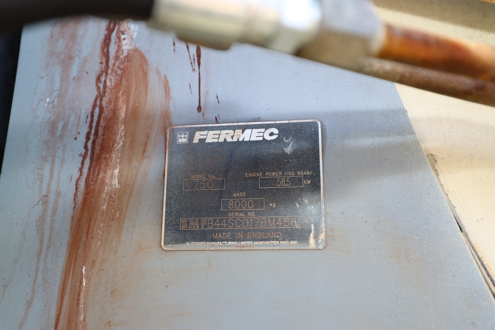 Fermec 750 Backhoe Loader. SN: SMFB44SC017BM4861. Hours reading: 3780. Seller reports: Operates, Backhoe control valves frozen, Hydraulic system leak (multiple), Parts no longer available for repair.