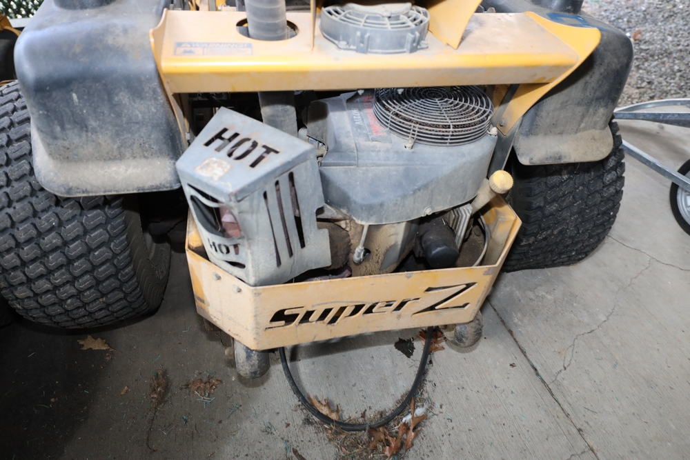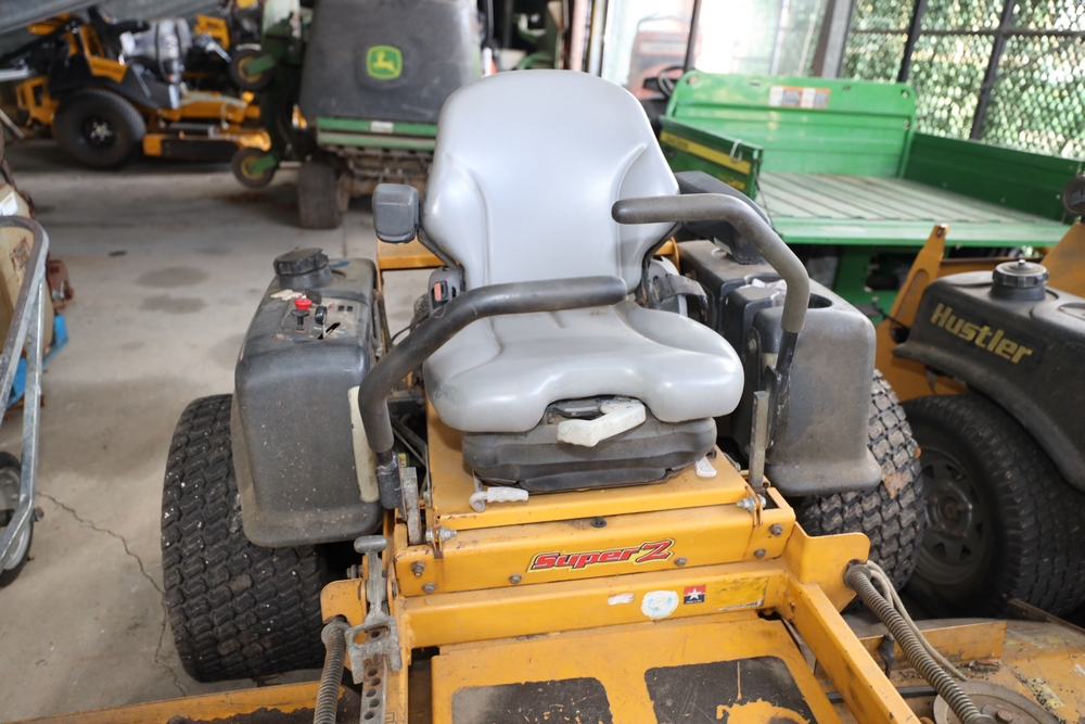 Hustler Super Z 72-inch mower. Model: 932186. SN: 13081776. Seller reports: Does not run, Low compression cylinder
