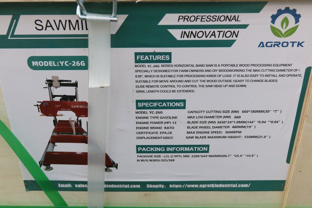 New 2026 AGT Portable sawmill, model YC-26G.