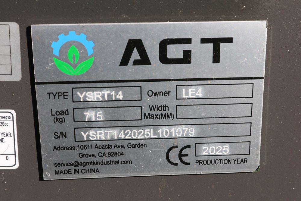 New 2026 AGT mini Skid Steer loader model YSRT14 with 420CC engine, hand controls and front facing light, and hydraulic hook ups. Hours reading less than one hour.