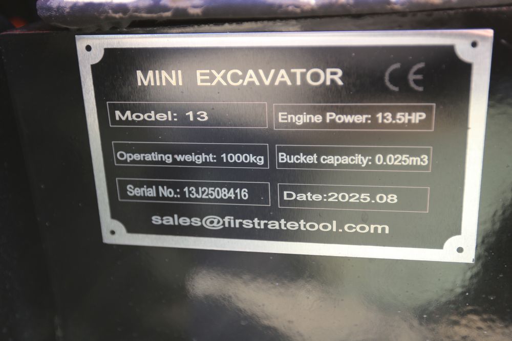New 2026 MIVA mini Crawler excavator model VA13 w/ thumb, tracks, 13.5 HP engine. Hours reading less than one hour.