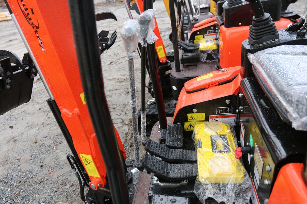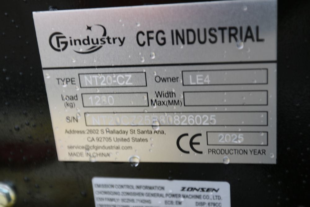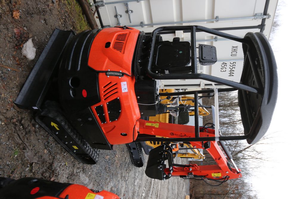 New 2025 CFG Industrial mini excavator model NT20-CZ, RATO 23HP 16.8KW gasoline engine with EPA, bucket, thumb, canopy cover, dozer blade, hand and foot controls. Hours reading less than 1 hour.
