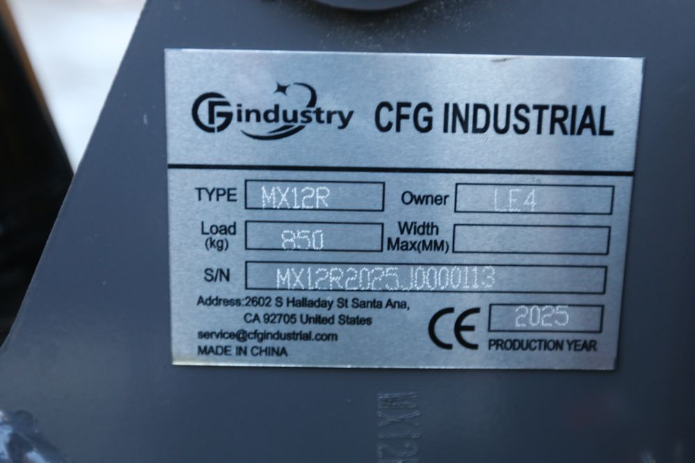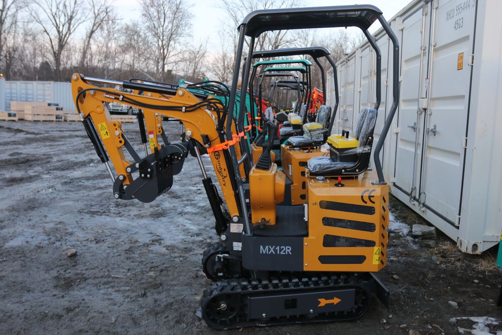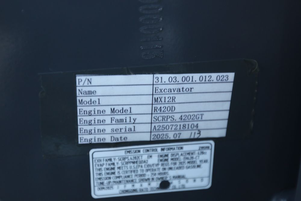 New 2025 CFG Industrial MX12R Mini Excavator with a 420CC gas engine, dozer blade, bucket, pilot control’s, and digital gauges. Hours reading less than 1 hour.