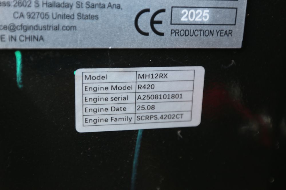 New 2025 CFG Industrial MH12RX mini excavator with bucket, thumb, gas engine. Hours reading less than 1 hour.