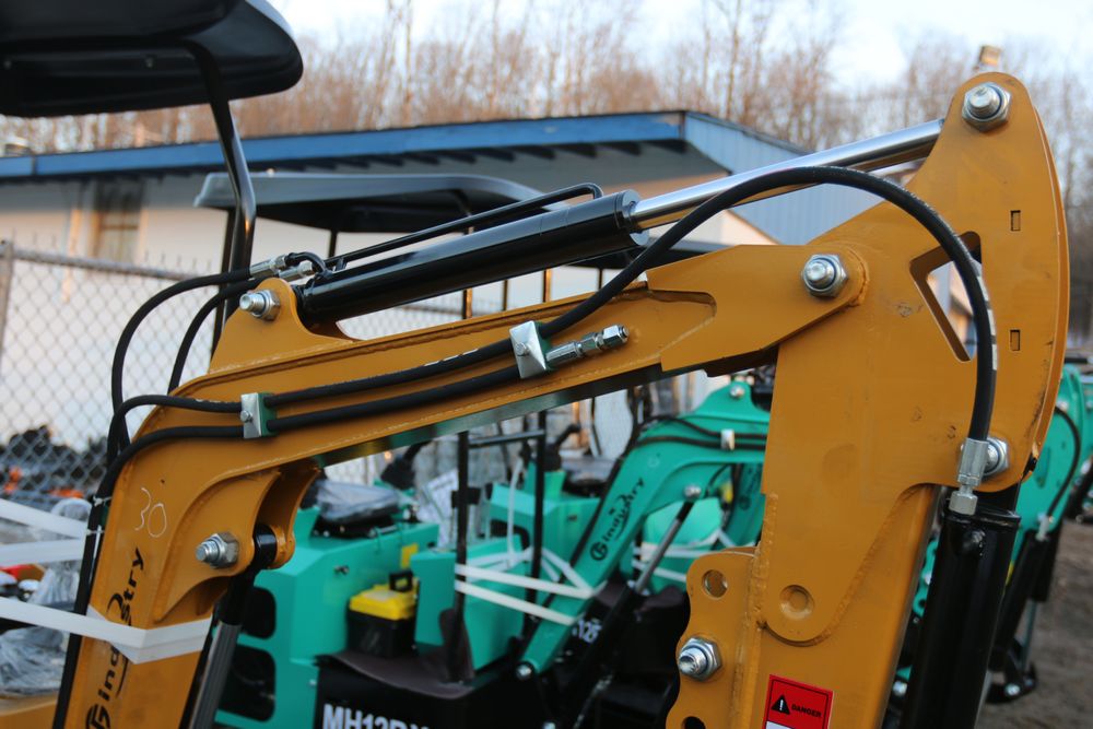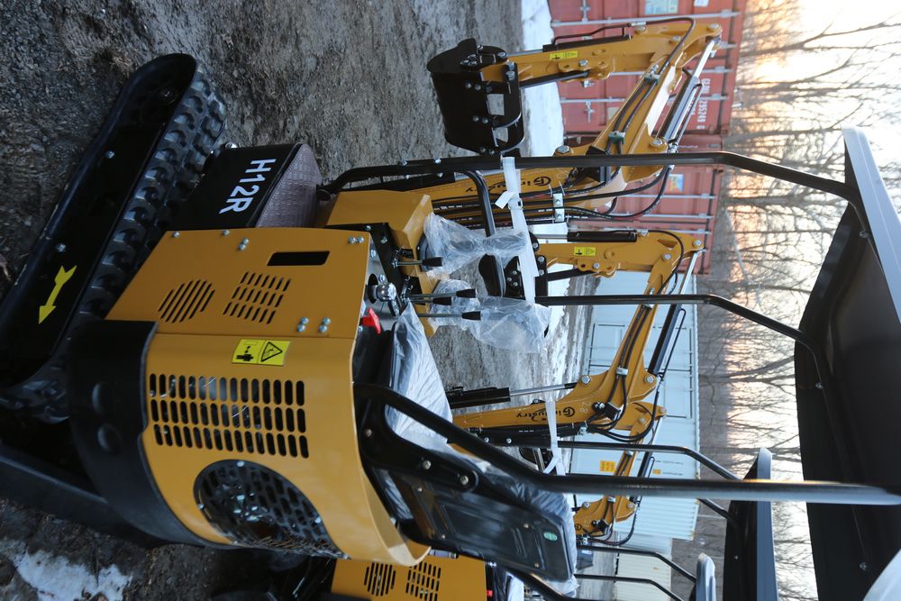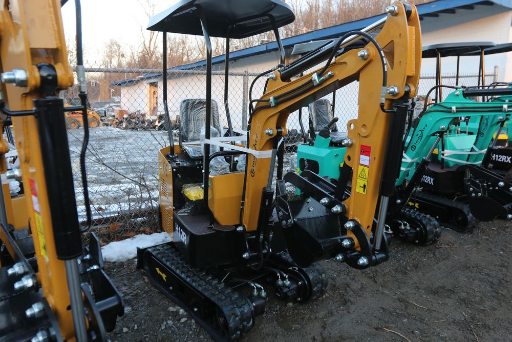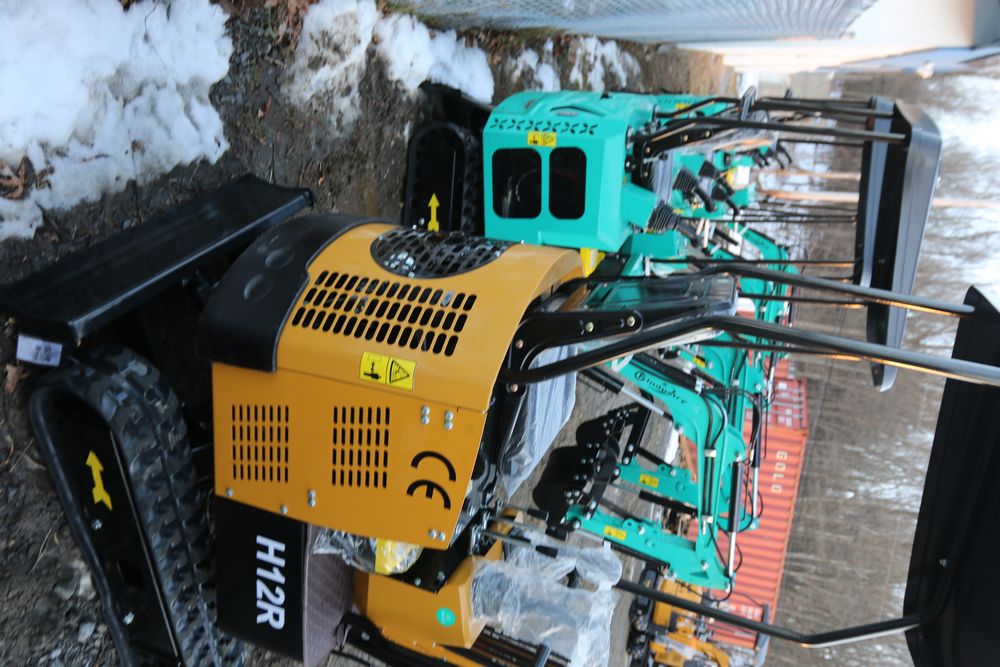 New 2025 CFG Industrial gas powered mini Excavator model H12R with 420cc gasoline engine with EPA, bucket, 4' long tracks, 36.5" wide base, 6" wide tracks, canopy, hydraulic boom & bucket controls, dozer blade. Hours reading less than 1 hour.
