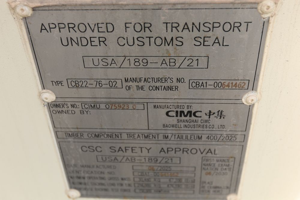 New 20' container, one end door. Container #CIMU0759230