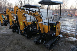 New 2025 CFG Industrial gas powered mini Excavator model H12R with 420cc gasoline engine with EPA, bucket, 4' long tracks, 36.5" wide base, 6" wide tracks, canopy, hydraulic boom & bucket controls, dozer blade. Hours reading less than 1 hour.