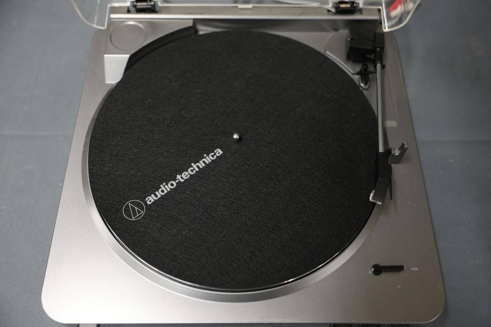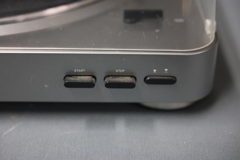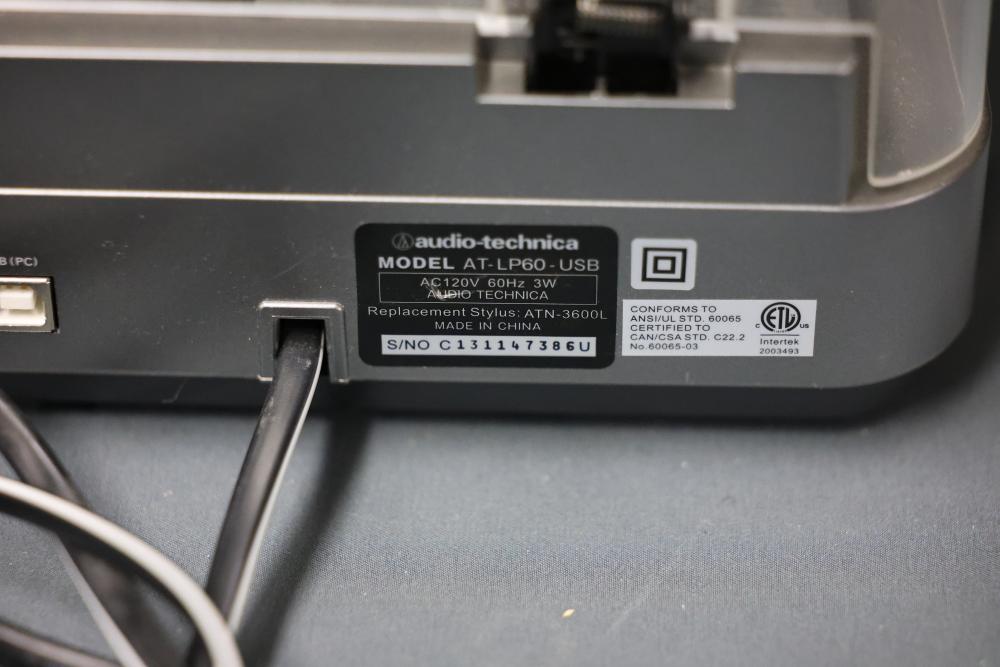 Audio-Technica AT-LP60-USB DJ Stereo Turntable featuring a USB output for direct connection to a computer. Includes buttons for start, stop, and speed selection, accommodating 33 and 45 RPM records. Comes with a clear dust cover and necessary cables for operation. Designed for reliable performance and ease of use. Pickup only.