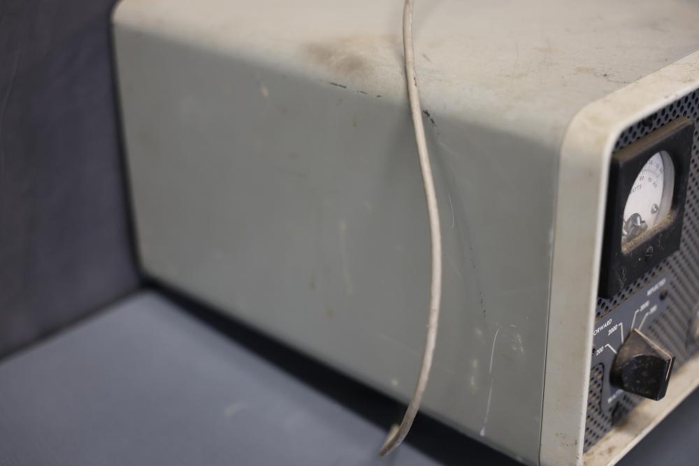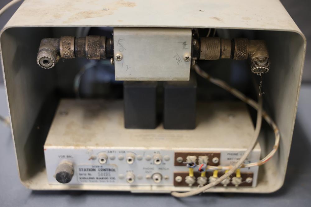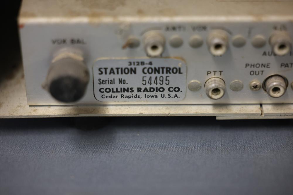 Collins 312B-4 Winged Emblem Vintage Ham Radio Station Control. Features a front panel with functional controls including a meter for wattage and knobs for settings adjustment. Rear panel includes input and output connections as well as a serial number identification. Unit shows wear consistent with age and use. Pickup only.