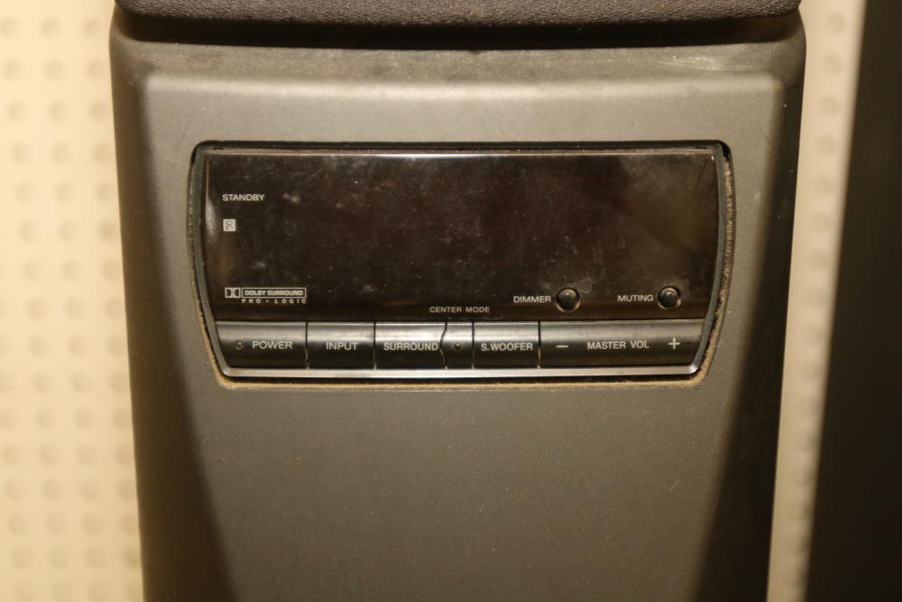 Sony SA-VA55 Floor Standing Active Power Speaker Pair with Link Cable and Wireless Transmitter. Includes link cable and wireless transmitter. Remote is not included. Speakers show signs of wear consistent with previous use. Pickup only.